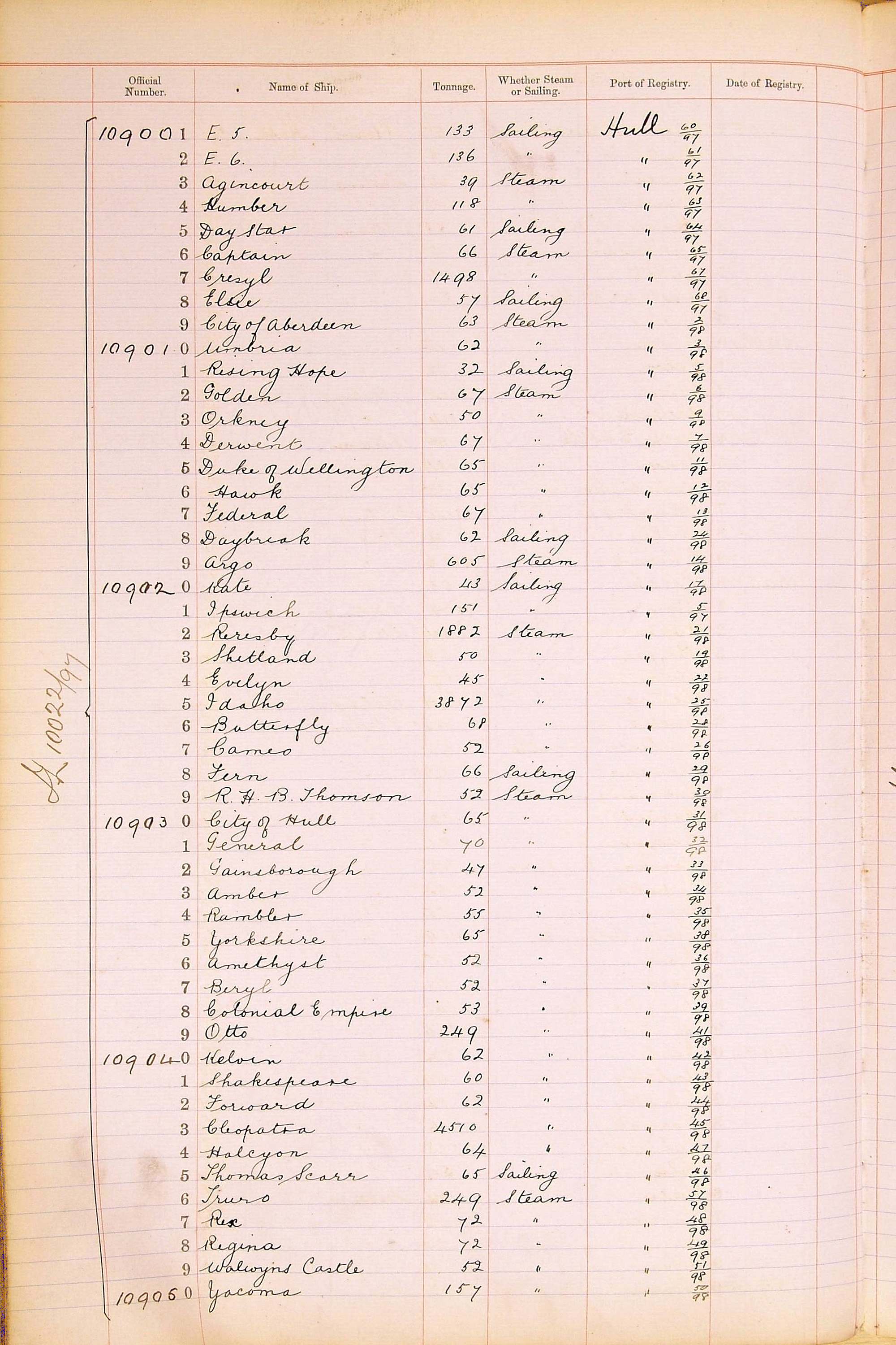 The ship names recorded are those that the ships carried at the time that their official numbers were allocated - changes are sometimes noted, but the best source for changes of name are the shipping registers for the port, or alternatively the Mercantile Navy List.
