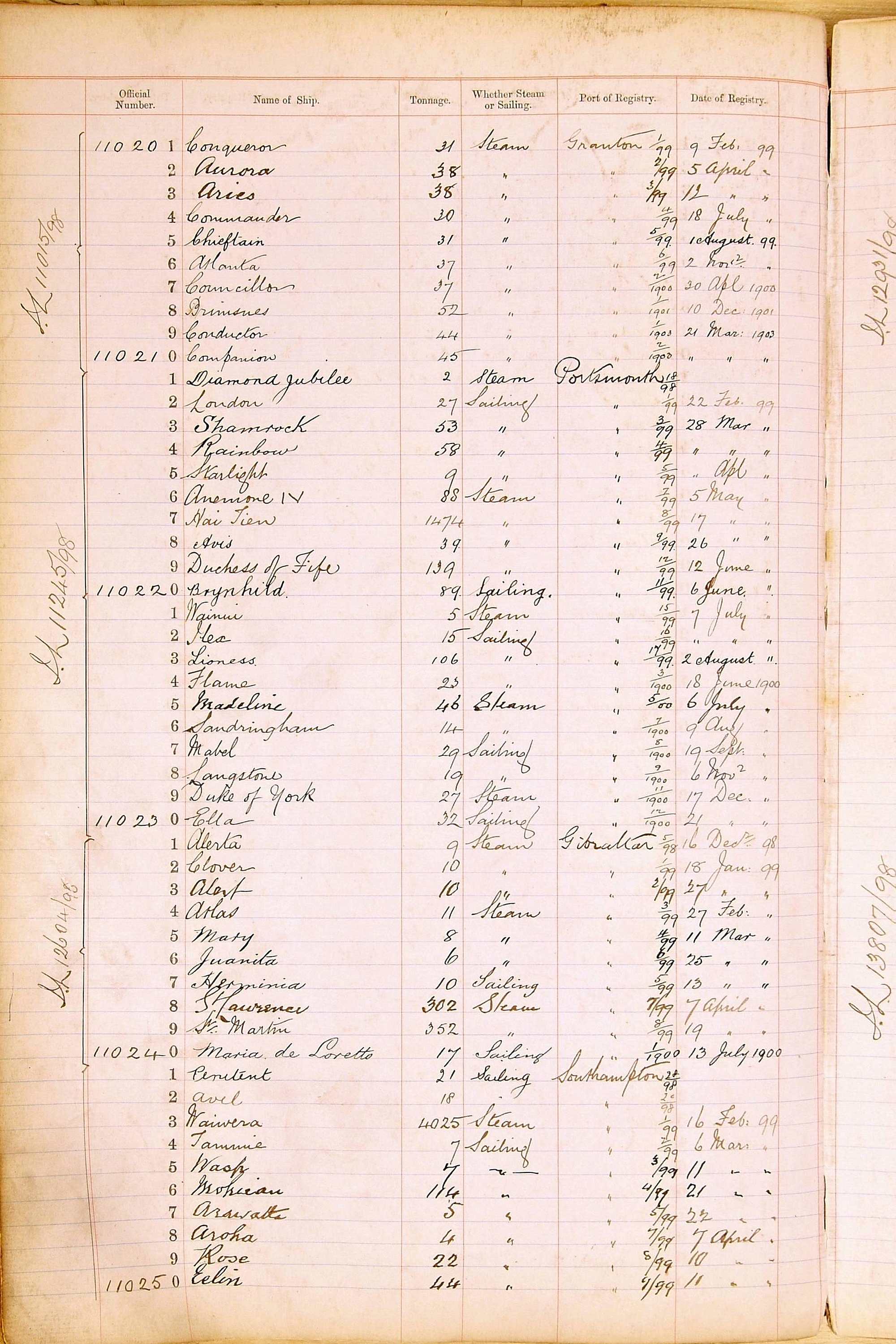 When the system of official numbers began on 16 April 1855, the British Ports of Registry were each allocated batches of official numbers. For official numbers up to 22200 you can see this allocation as a pencil note at the top of the page where the allocation began. A summary of the first allocation is shown here: Initial allocation of official numbers
