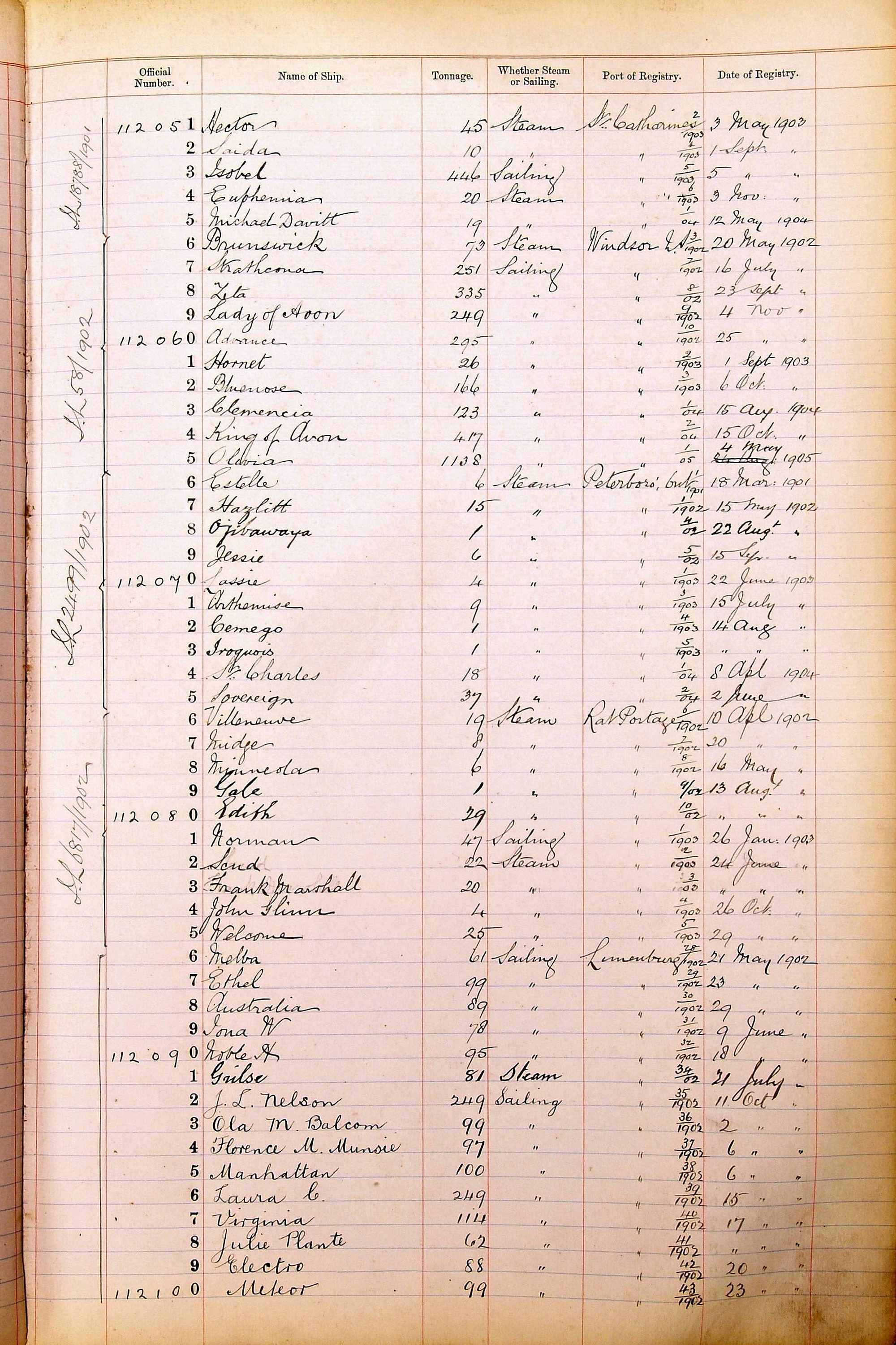 The ship names recorded are those that the ships carried at the time that their official numbers were allocated - changes are sometimes noted, but the best source for changes of name are the shipping registers for the port, or alternatively the Mercantile Navy List.