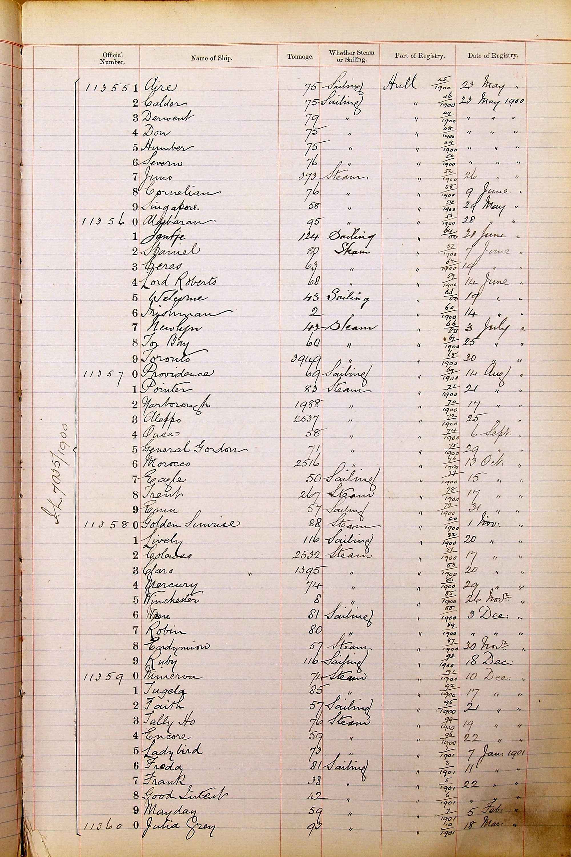 The ship names recorded are those that the ships carried at the time that their official numbers were allocated - changes are sometimes noted, but the best source for changes of name are the shipping registers for the port, or alternatively the Mercantile Navy List.