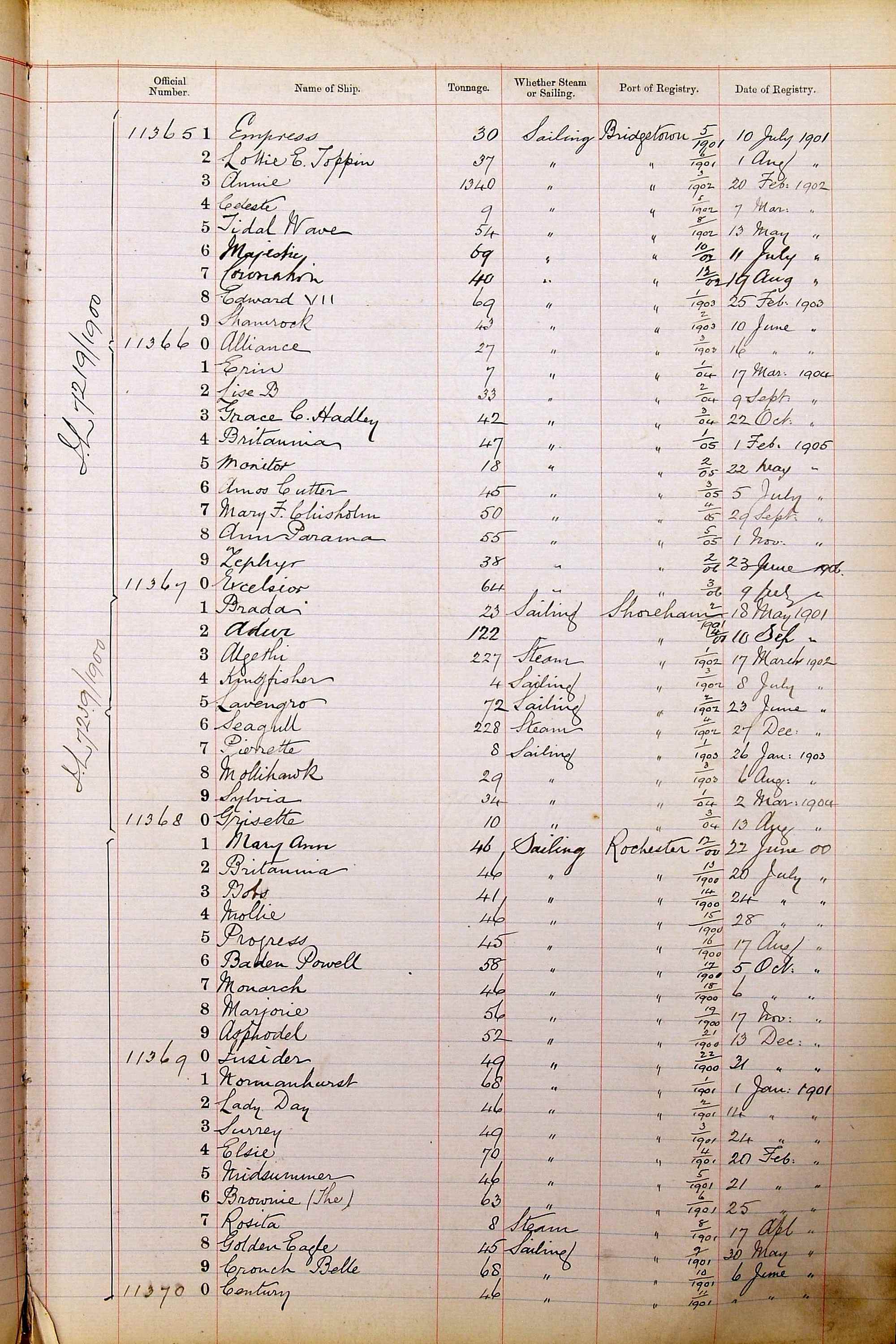 When the system of official numbers began on 16 April 1855, the British Ports of Registry were each allocated batches of official numbers. For official numbers up to 22200 you can see this allocation as a pencil note at the top of the page where the allocation began. A summary of the first allocation is shown here: Initial allocation of official numbers