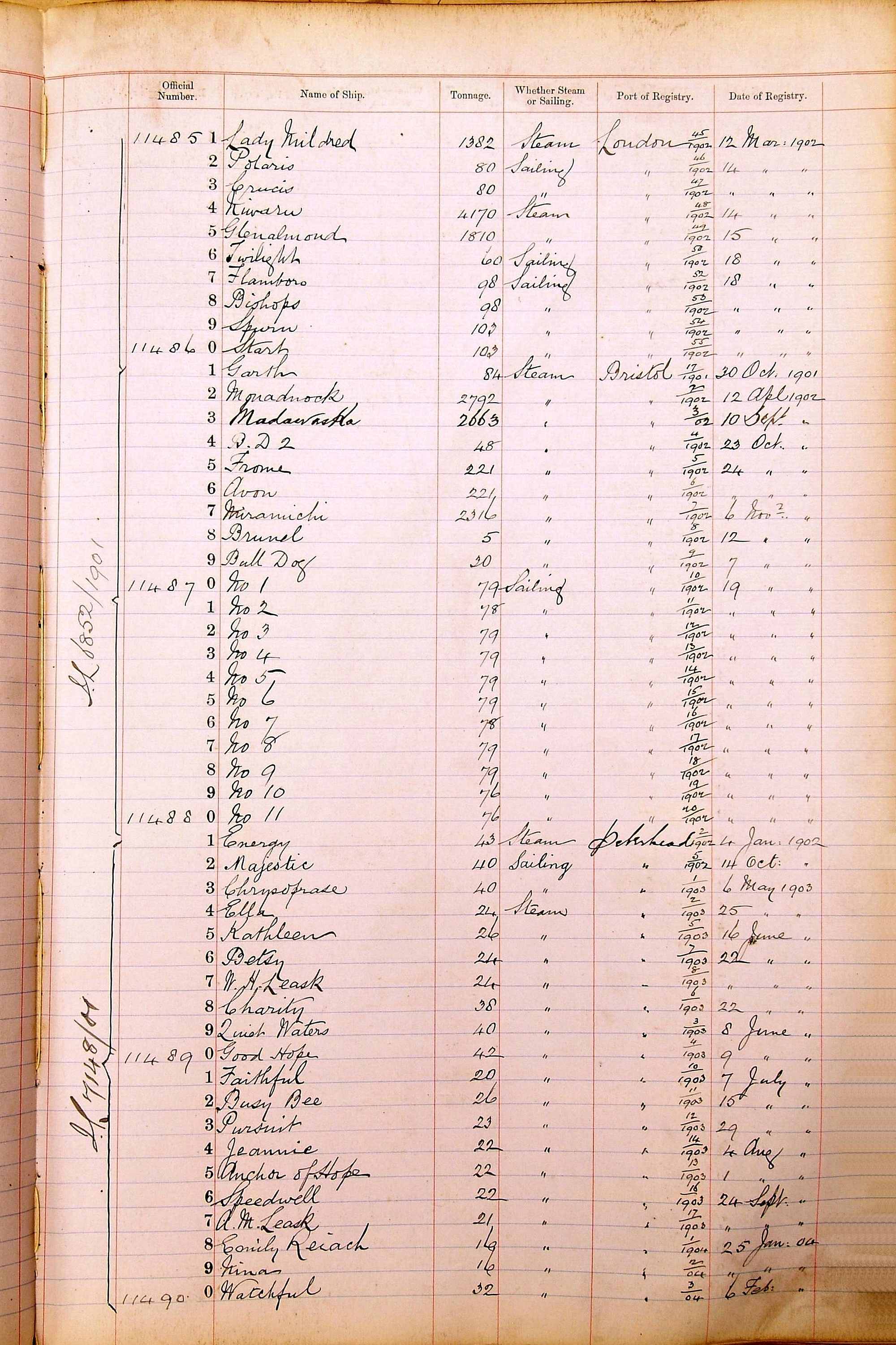 The ship names recorded are those that the ships carried at the time that their official numbers were allocated - changes are sometimes noted, but the best source for changes of name are the shipping registers for the port, or alternatively the Mercantile Navy List.
