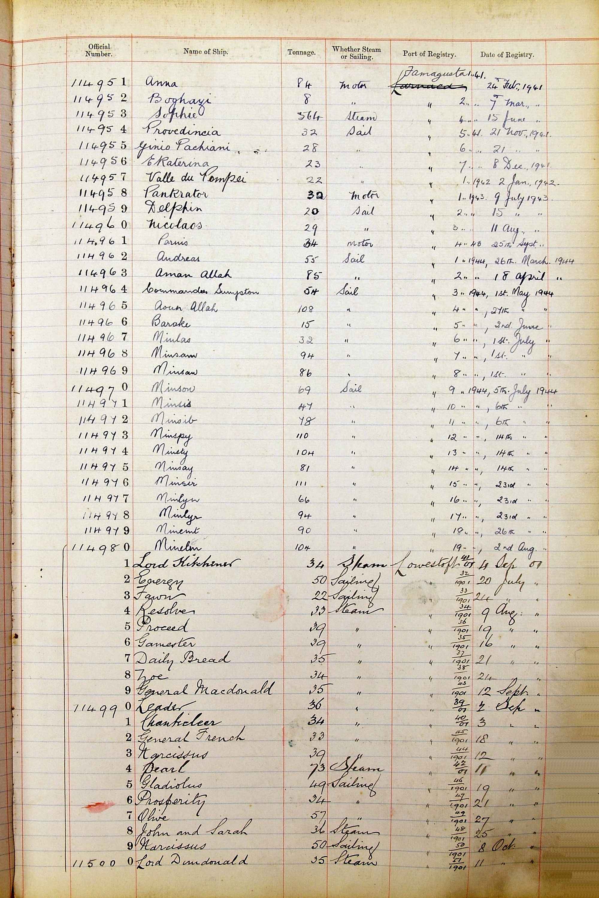 The ship names recorded are those that the ships carried at the time that their official numbers were allocated - changes are sometimes noted, but the best source for changes of name are the shipping registers for the port, or alternatively the Mercantile Navy List.