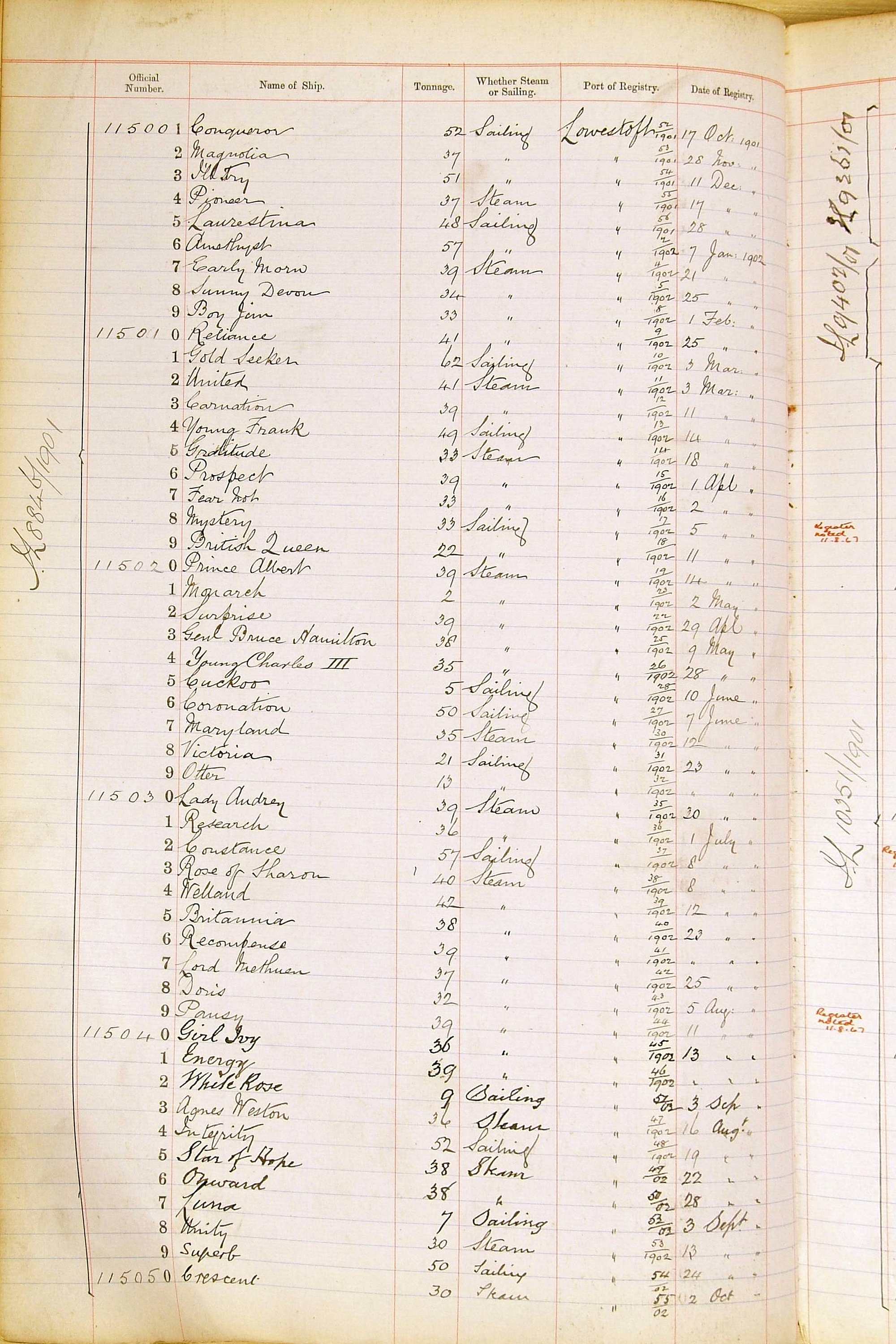 When the system of official numbers began on 16 April 1855, the British Ports of Registry were each allocated batches of official numbers. For official numbers up to 22200 you can see this allocation as a pencil note at the top of the page where the allocation began. A summary of the first allocation is shown here: Initial allocation of official numbers
