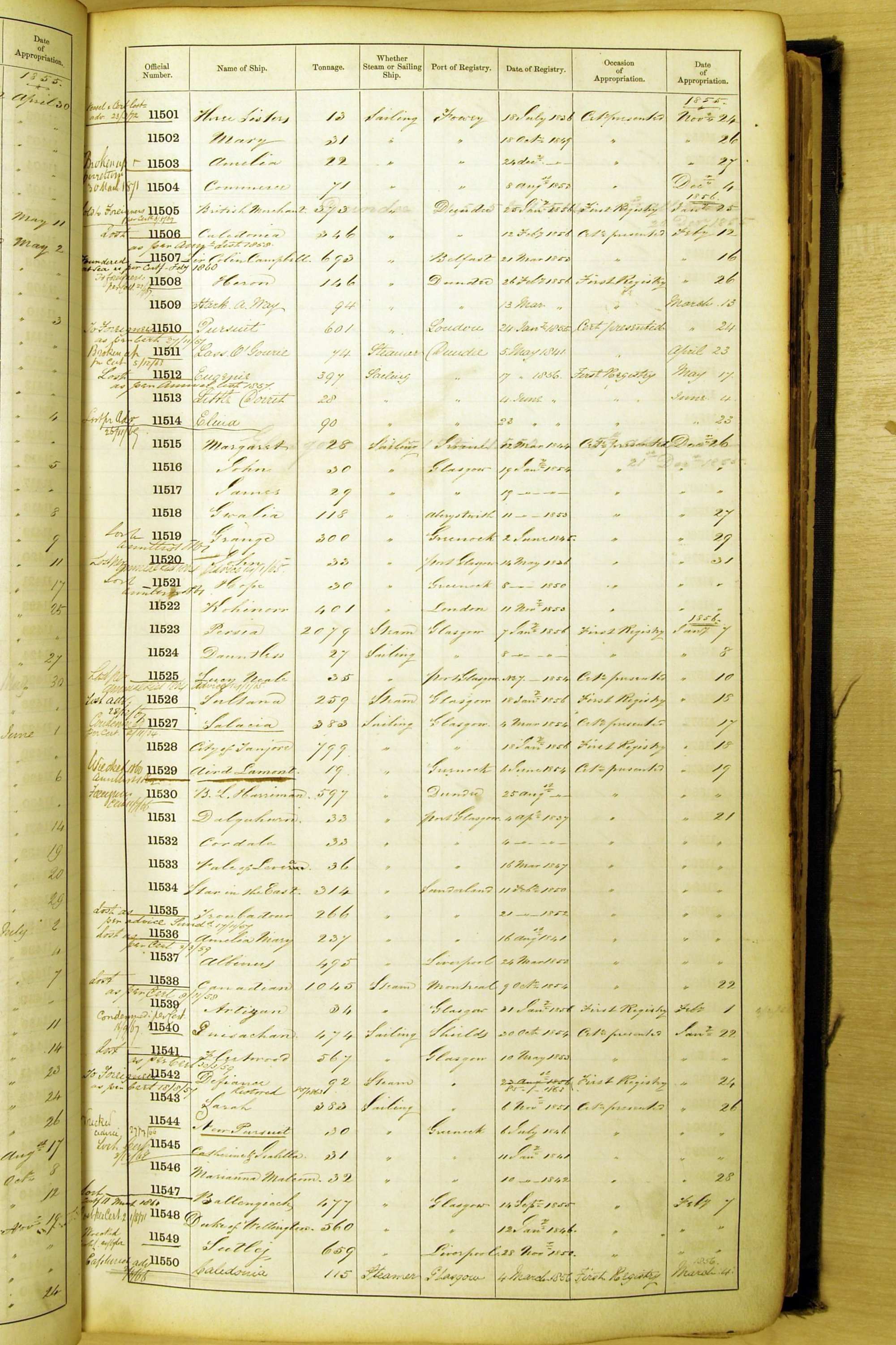 Bear in mind that the ships names in the Appropriation Books are not the definitive name or spelling of the name, even though these are the central records for the whole system. As you can see, the entries are hand-written and derived from hand-written returns made by the various ports, themselves based on the hand-written shipping registers, based on what the port officials thought the person registering the ship was saying or had hand-written down.
