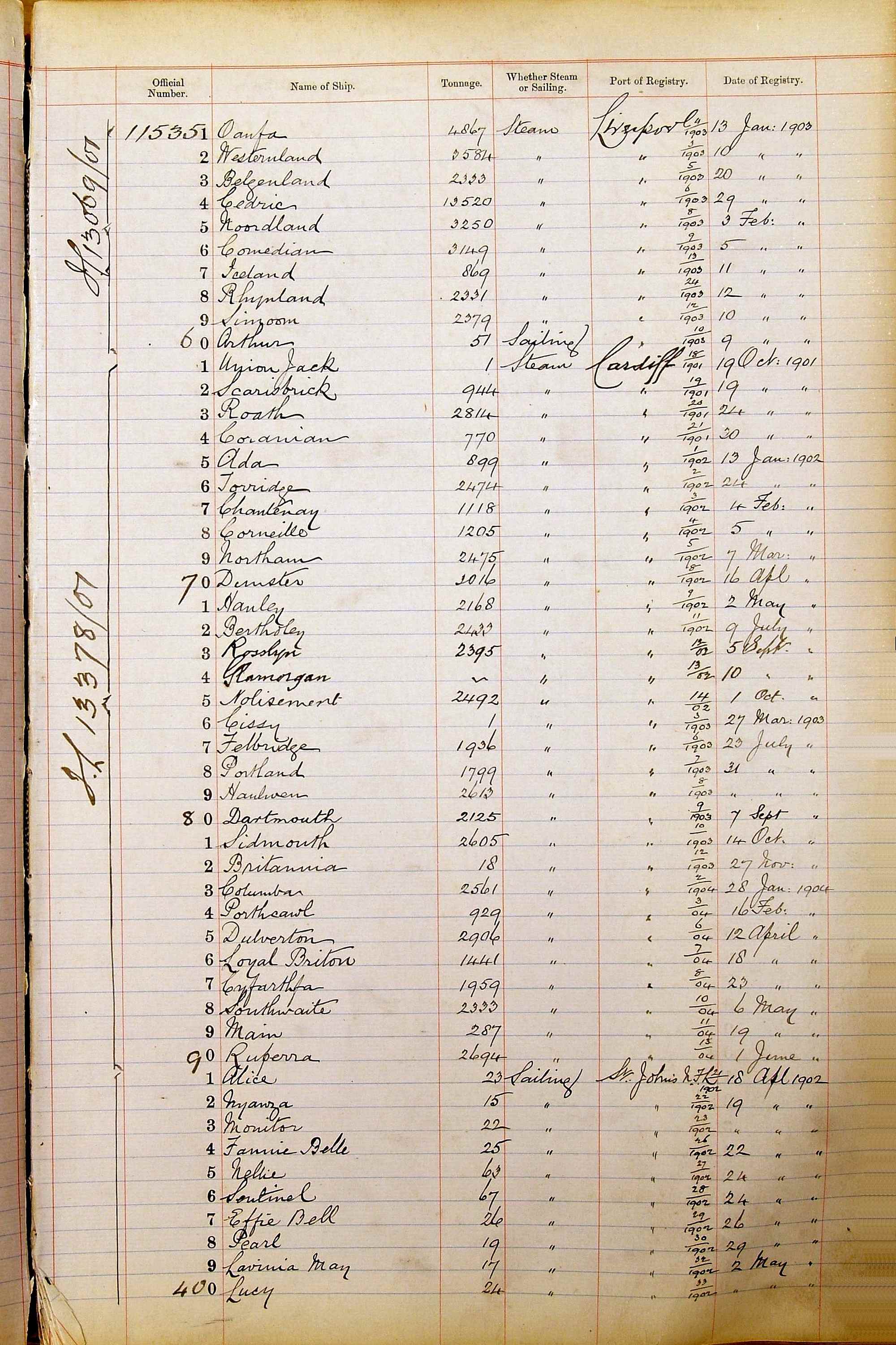 When the system of official numbers began on 16 April 1855, the British Ports of Registry were each allocated batches of official numbers. For official numbers up to 22200 you can see this allocation as a pencil note at the top of the page where the allocation began. A summary of the first allocation is shown here: Initial allocation of official numbers