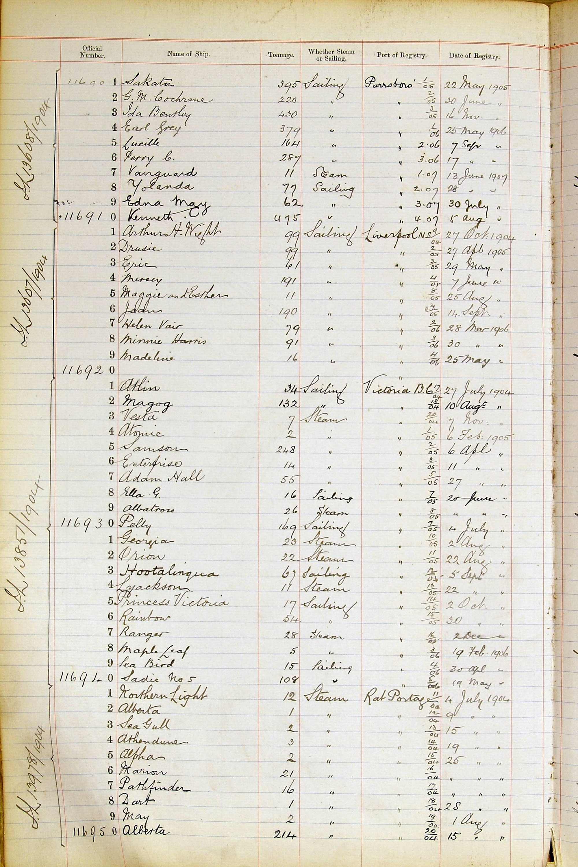 The ship names recorded are those that the ships carried at the time that their official numbers were allocated - changes are sometimes noted, but the best source for changes of name are the shipping registers for the port, or alternatively the Mercantile Navy List.