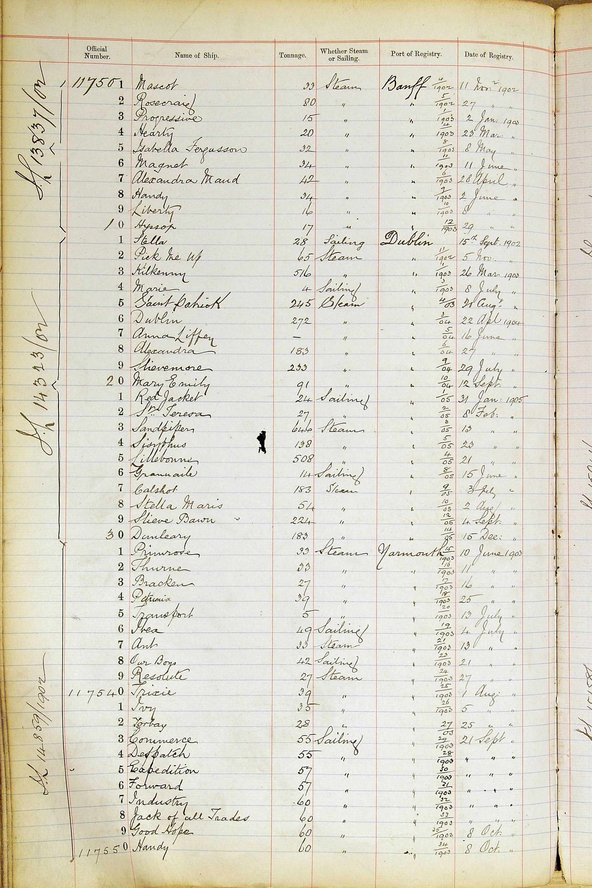 When the system of official numbers began on 16 April 1855, the British Ports of Registry were each allocated batches of official numbers. For official numbers up to 22200 you can see this allocation as a pencil note at the top of the page where the allocation began. A summary of the first allocation is shown here: Initial allocation of official numbers