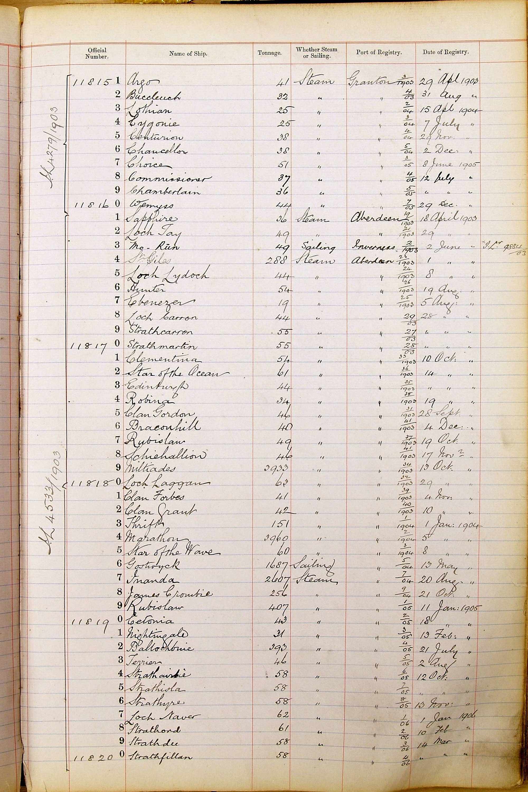 When the system of official numbers began on 16 April 1855, the British Ports of Registry were each allocated batches of official numbers. For official numbers up to 22200 you can see this allocation as a pencil note at the top of the page where the allocation began. A summary of the first allocation is shown here: Initial allocation of official numbers