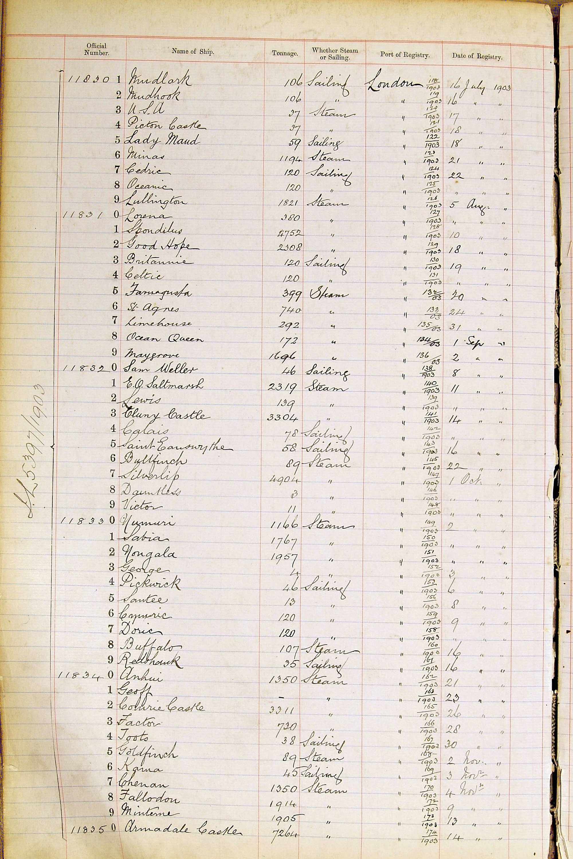 The ship names recorded are those that the ships carried at the time that their official numbers were allocated - changes are sometimes noted, but the best source for changes of name are the shipping registers for the port, or alternatively the Mercantile Navy List.