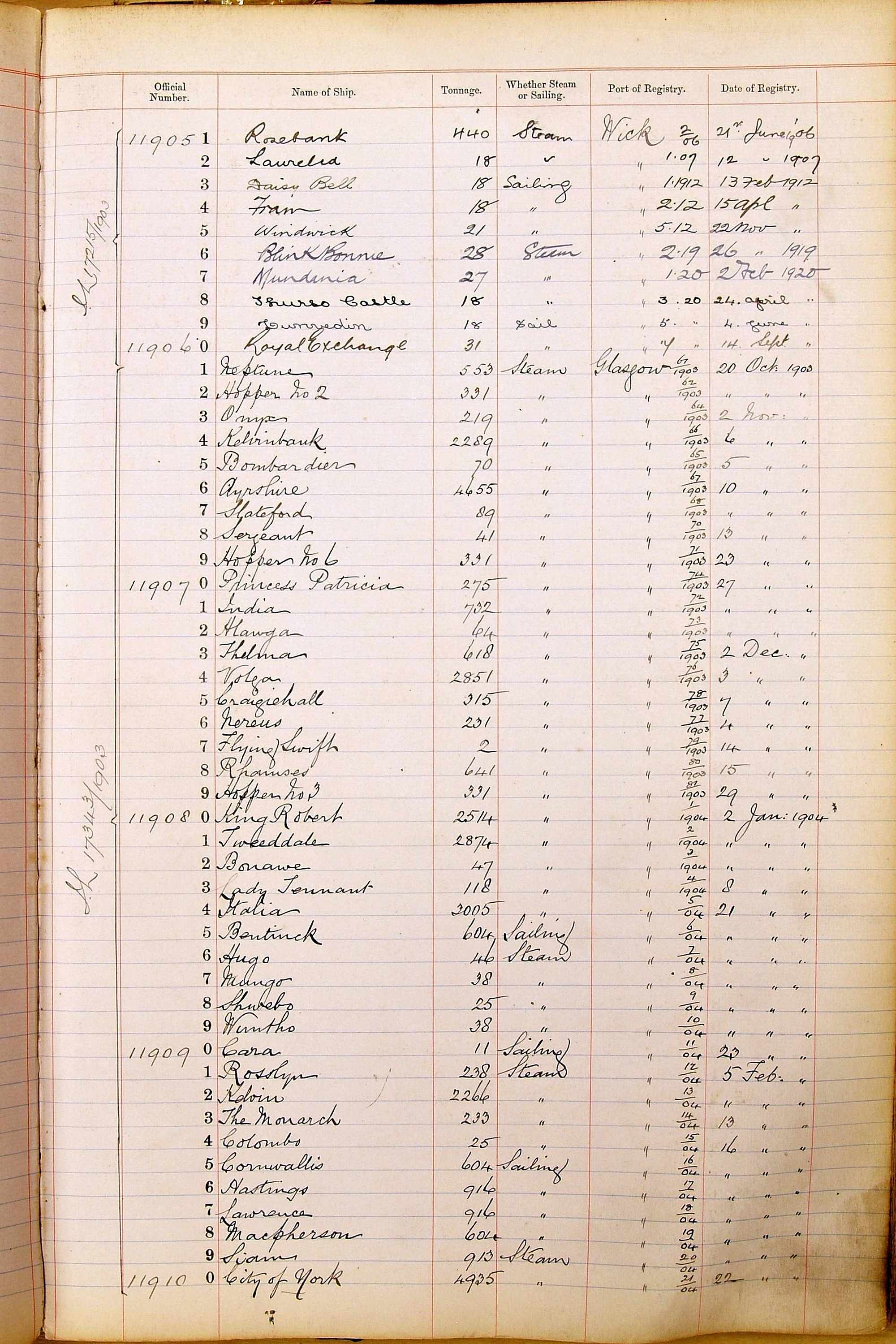 When the system of official numbers began on 16 April 1855, the British Ports of Registry were each allocated batches of official numbers. For official numbers up to 22200 you can see this allocation as a pencil note at the top of the page where the allocation began. A summary of the first allocation is shown here: Initial allocation of official numbers