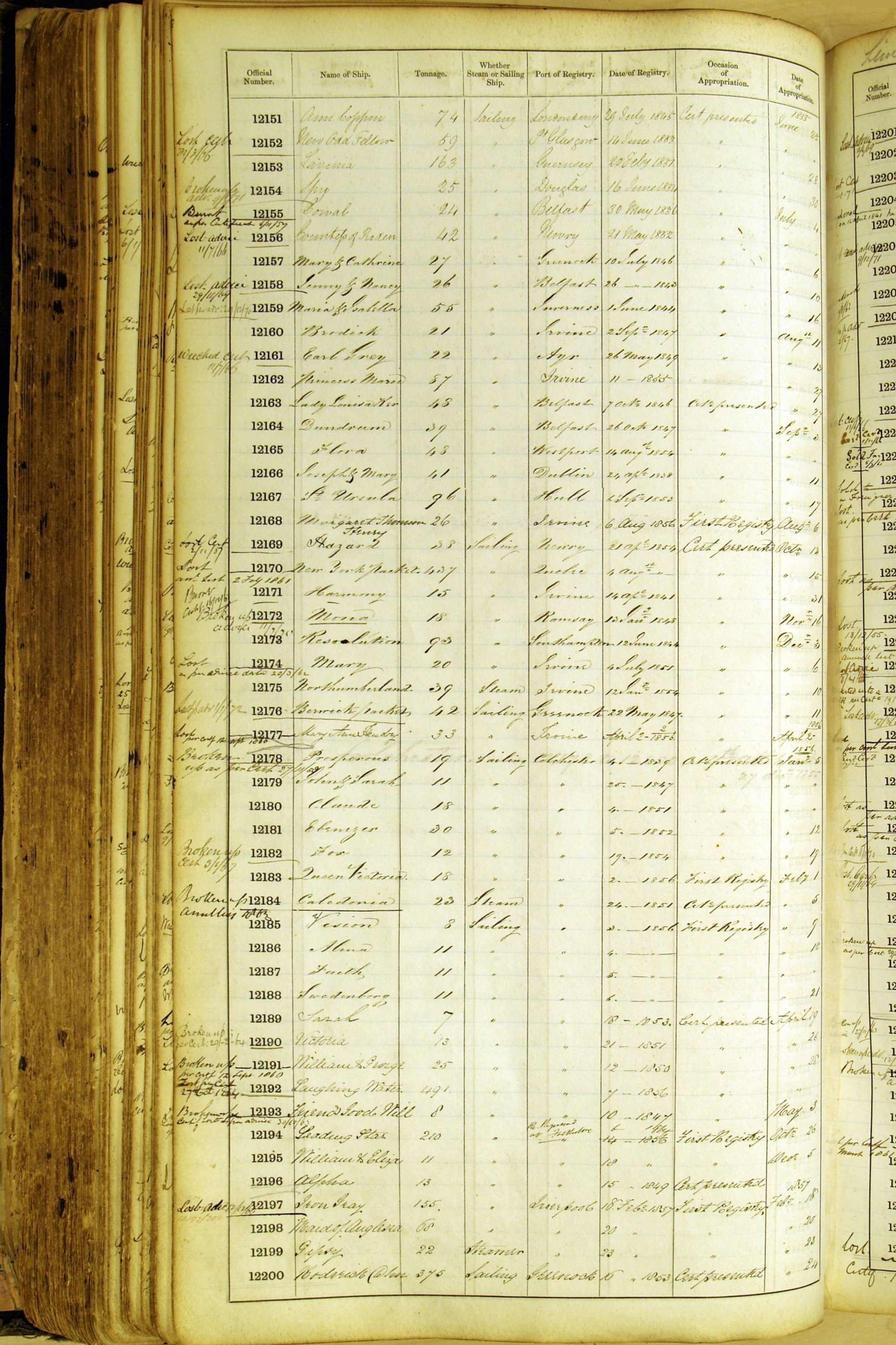 Bear in mind that the ships names in the Appropriation Books are not the definitive name or spelling of the name, even though these are the central records for the whole system. As you can see, the entries are hand-written and derived from hand-written returns made by the various ports, themselves based on the hand-written shipping registers, based on what the port officials thought the person registering the ship was saying or had hand-written down.