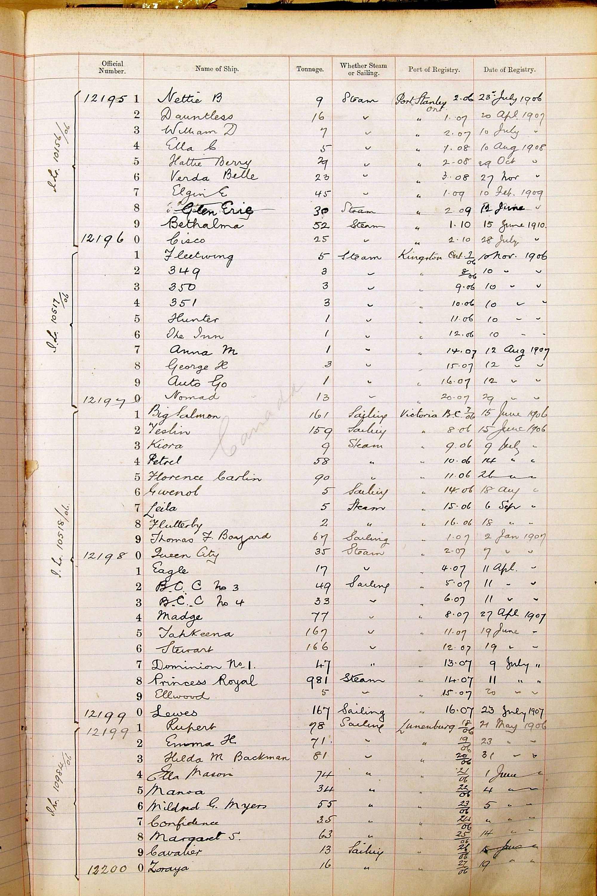 When the system of official numbers began on 16 April 1855, the British Ports of Registry were each allocated batches of official numbers. For official numbers up to 22200 you can see this allocation as a pencil note at the top of the page where the allocation began. A summary of the first allocation is shown here: Initial allocation of official numbers