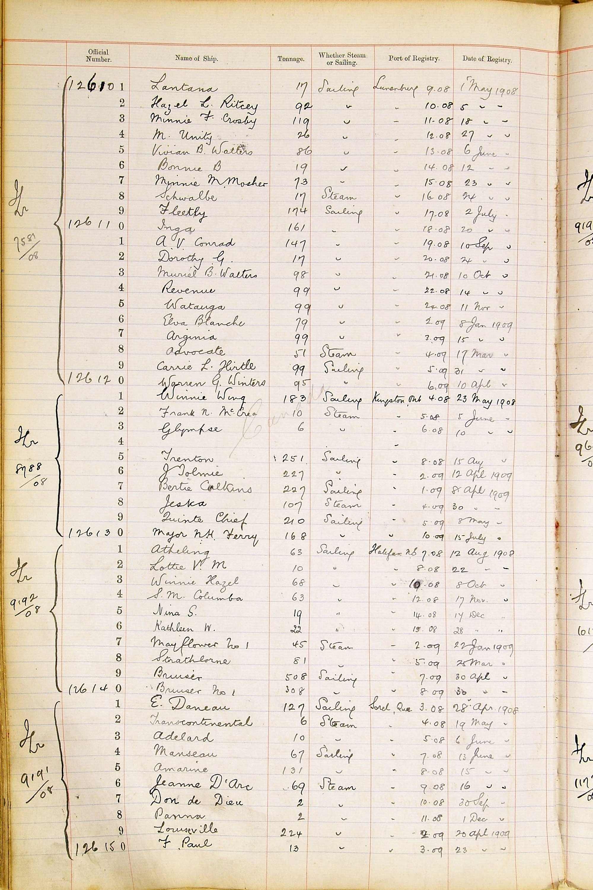 The ship names recorded are those that the ships carried at the time that their official numbers were allocated - changes are sometimes noted, but the best source for changes of name are the shipping registers for the port, or alternatively the Mercantile Navy List.