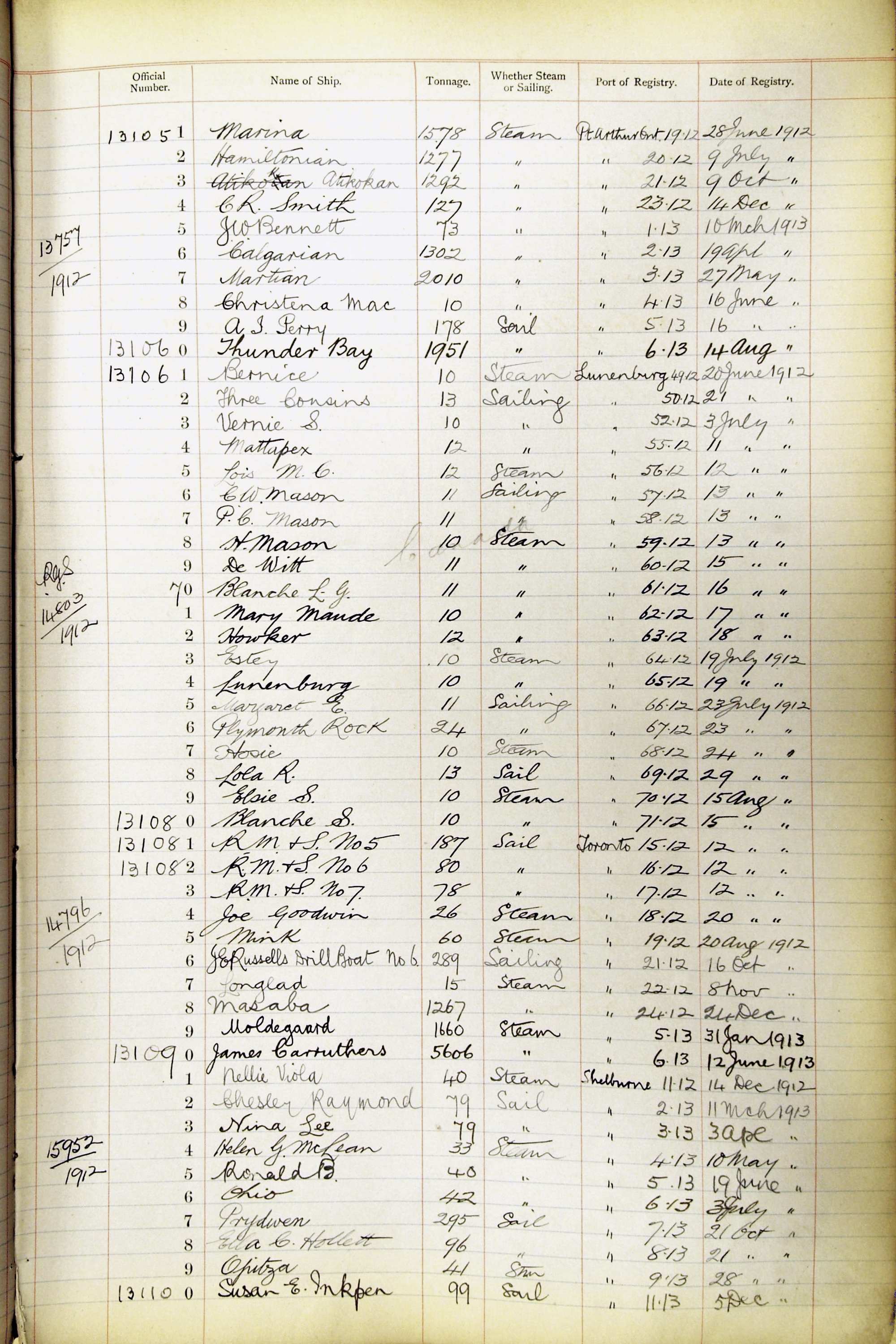 The ship names recorded are those that the ships carried at the time that their official numbers were allocated - changes are sometimes noted, but the best source for changes of name are the shipping registers for the port, or alternatively the Mercantile Navy List.