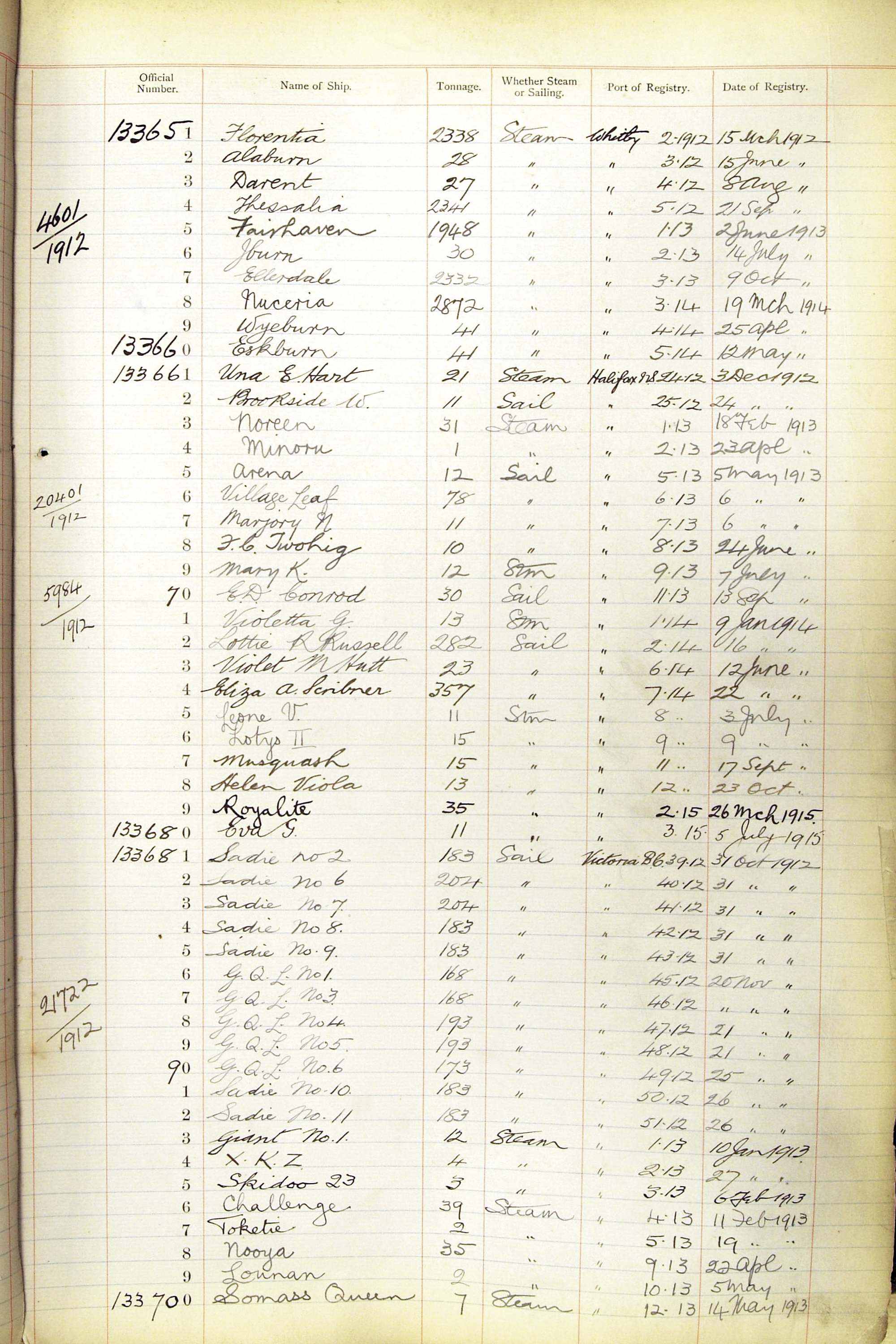The ship names recorded are those that the ships carried at the time that their official numbers were allocated - changes are sometimes noted, but the best source for changes of name are the shipping registers for the port, or alternatively the Mercantile Navy List.