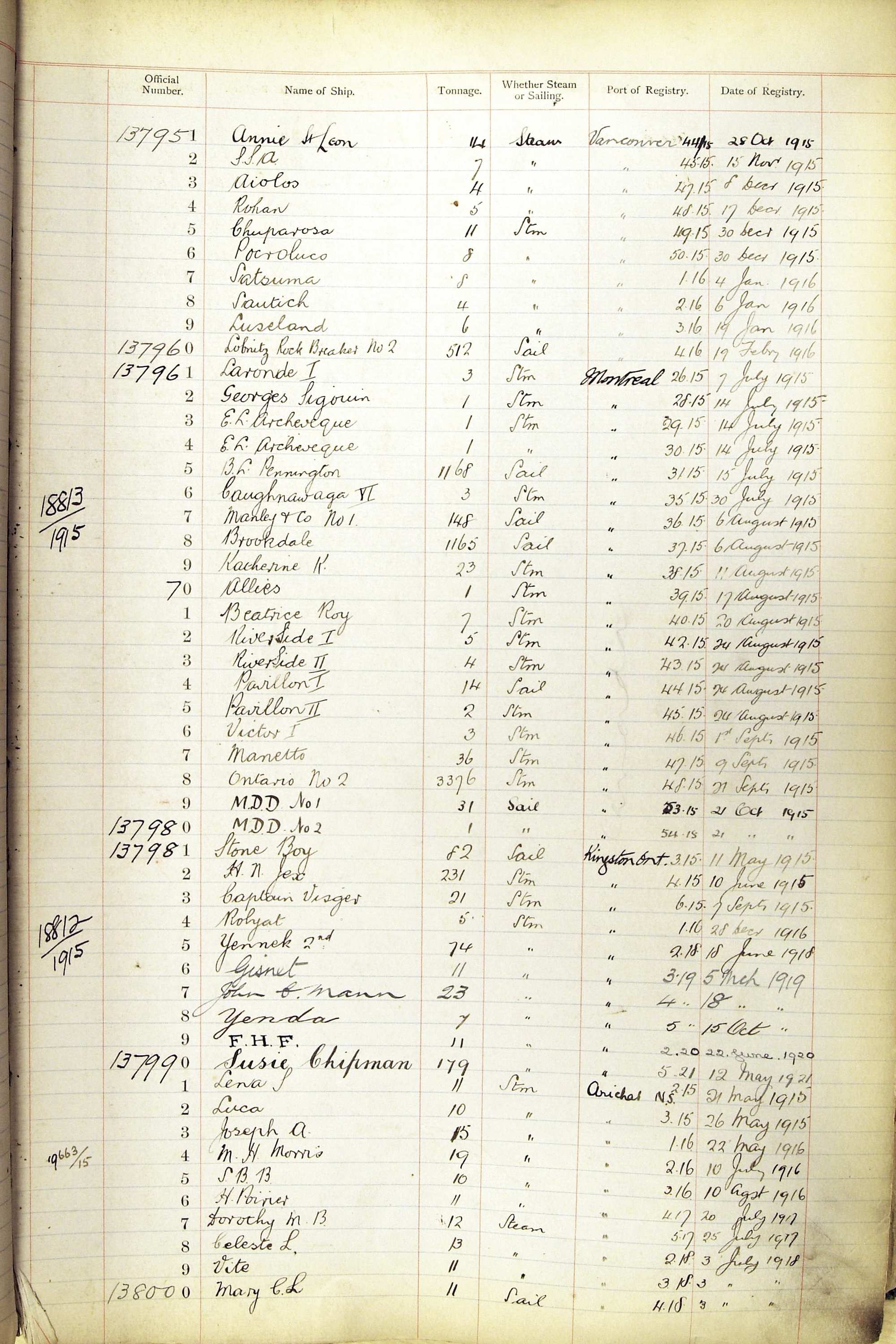 The ship names recorded are those that the ships carried at the time that their official numbers were allocated - changes are sometimes noted, but the best source for changes of name are the shipping registers for the port, or alternatively the Mercantile Navy List.