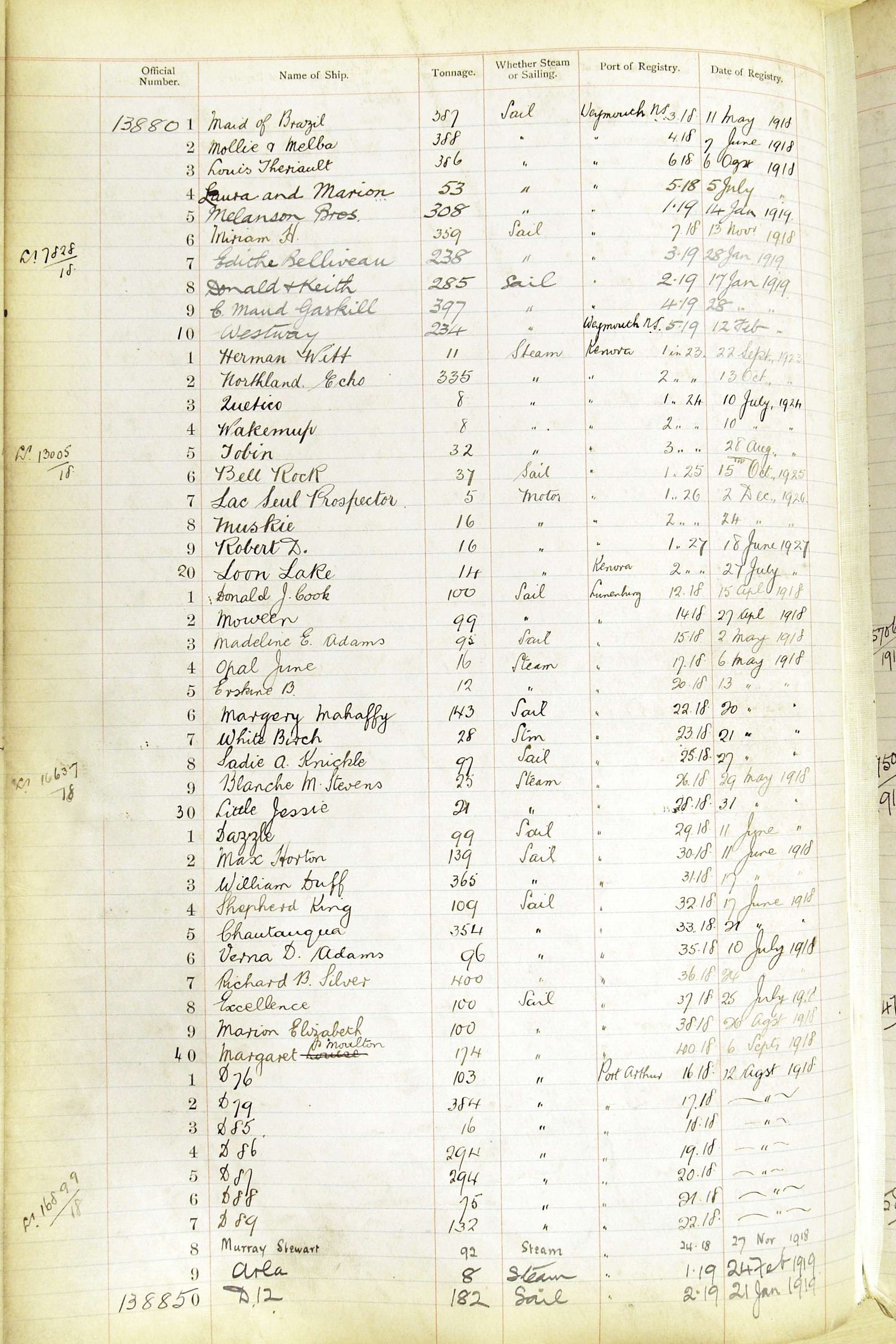 The ship names recorded are those that the ships carried at the time that their official numbers were allocated - changes are sometimes noted, but the best source for changes of name are the shipping registers for the port, or alternatively the Mercantile Navy List.
