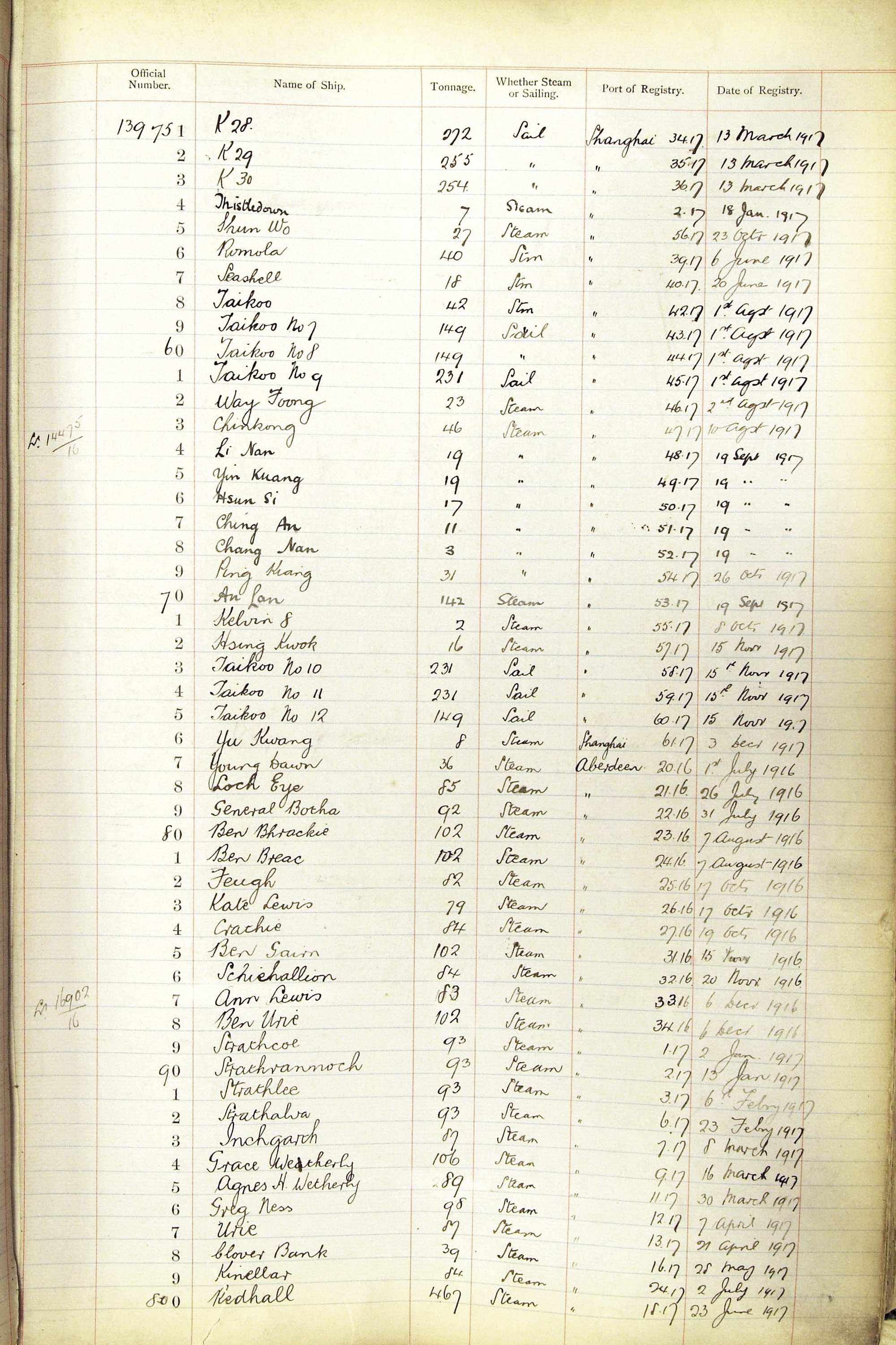 When the system of official numbers began on 16 April 1855, the British Ports of Registry were each allocated batches of official numbers. For official numbers up to 22200 you can see this allocation as a pencil note at the top of the page where the allocation began. A summary of the first allocation is shown here: Initial allocation of official numbers