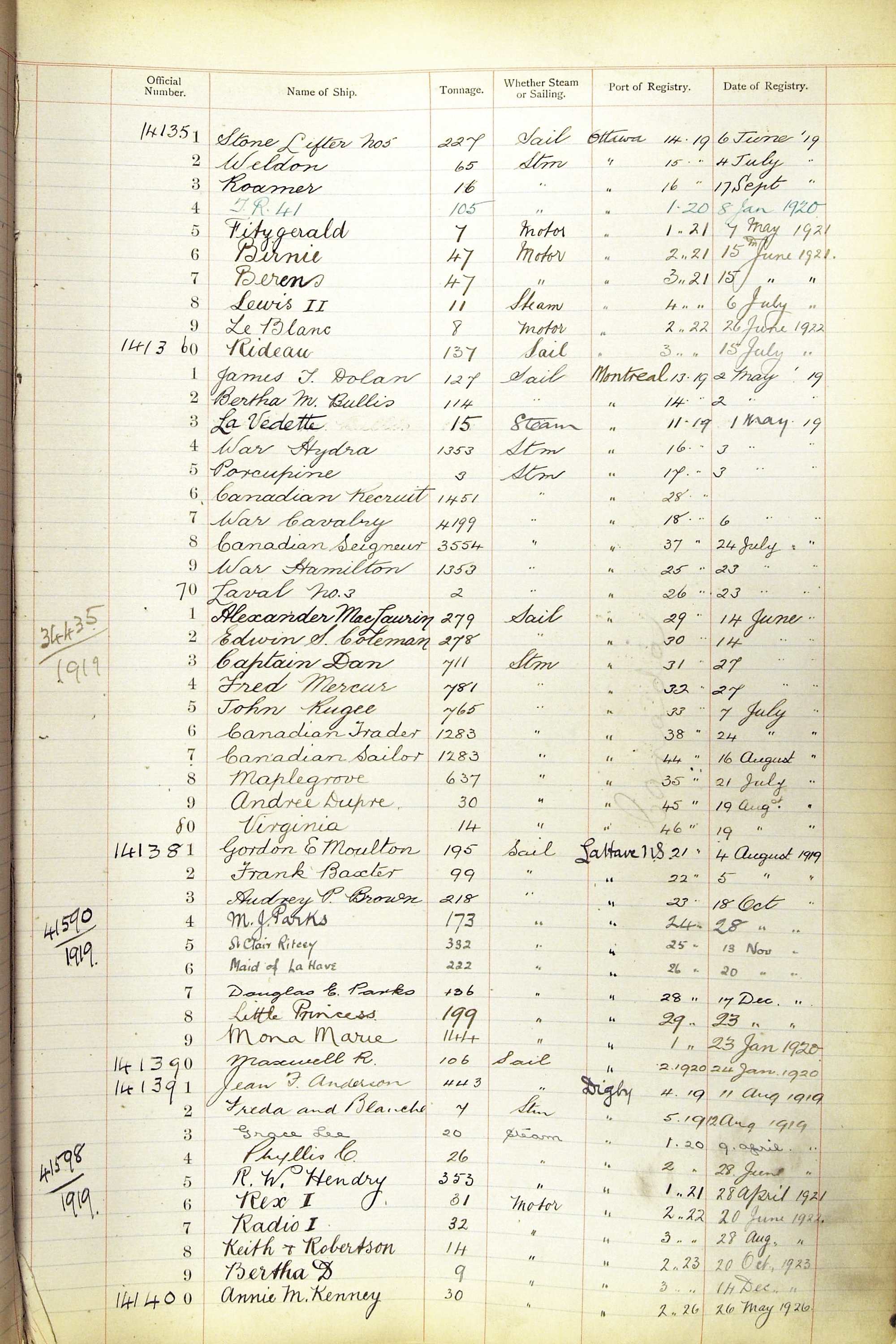 The ship names recorded are those that the ships carried at the time that their official numbers were allocated - changes are sometimes noted, but the best source for changes of name are the shipping registers for the port, or alternatively the Mercantile Navy List.