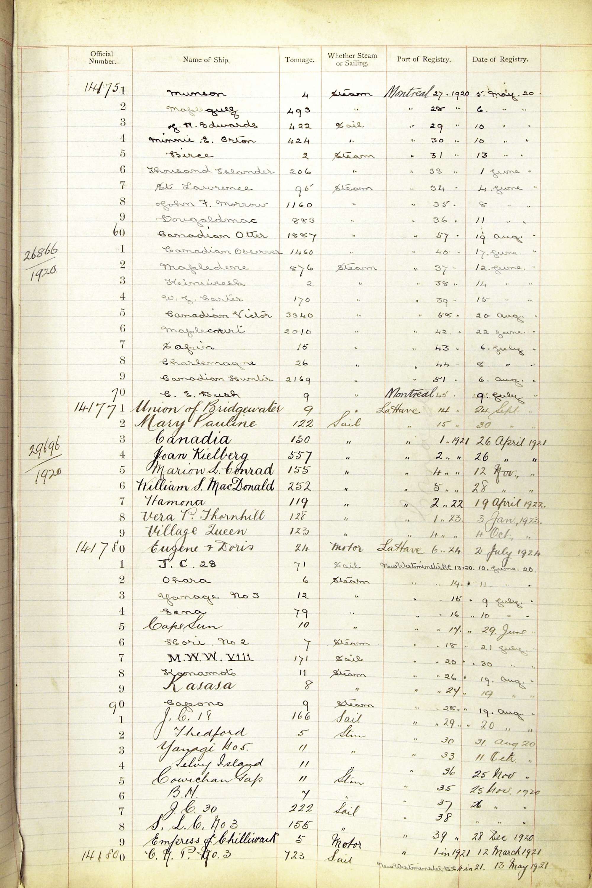 The ship names recorded are those that the ships carried at the time that their official numbers were allocated - changes are sometimes noted, but the best source for changes of name are the shipping registers for the port, or alternatively the Mercantile Navy List.