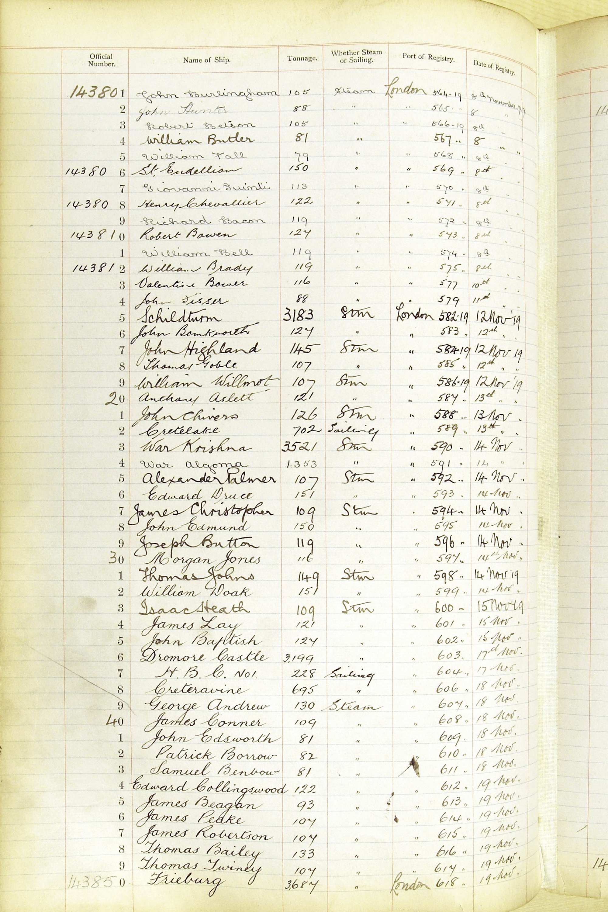 The ship names recorded are those that the ships carried at the time that their official numbers were allocated - changes are sometimes noted, but the best source for changes of name are the shipping registers for the port, or alternatively the Mercantile Navy List.