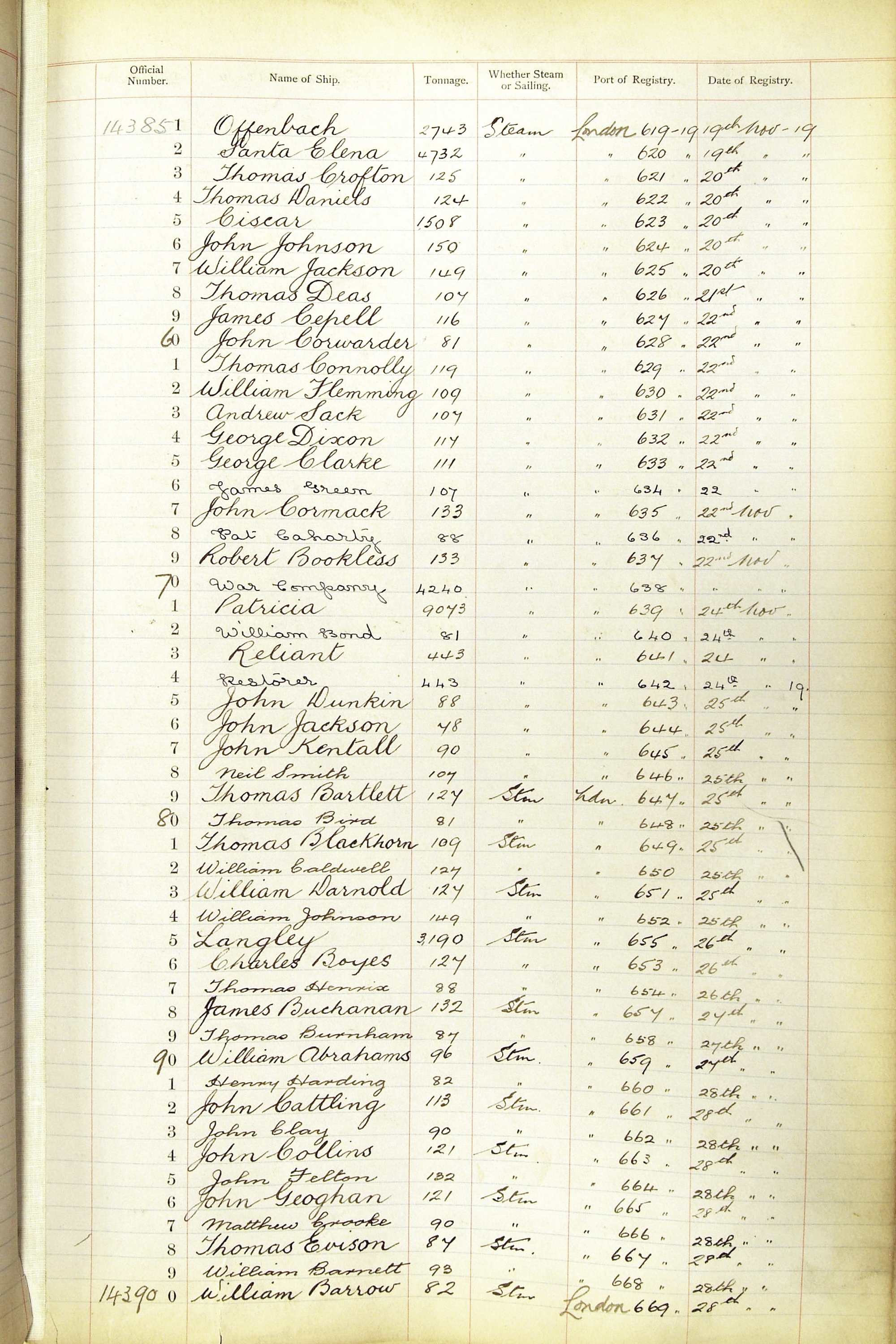 The ship names recorded are those that the ships carried at the time that their official numbers were allocated - changes are sometimes noted, but the best source for changes of name are the shipping registers for the port, or alternatively the Mercantile Navy List.