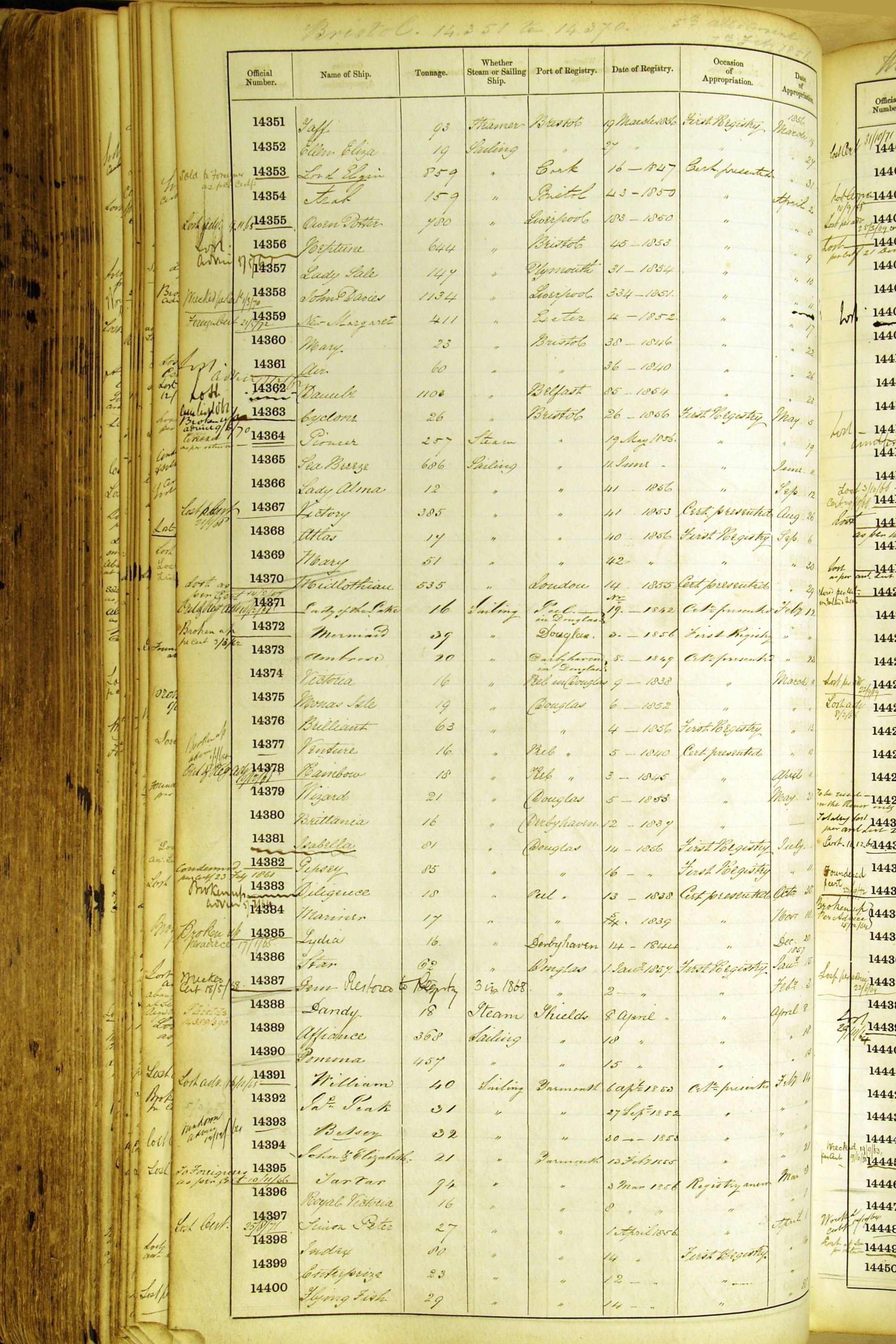 The images were made by CLIP from the original volumes held at the Registry of Shipping and Seamen in Cardiff and we would like to thank the staff for their helpfulness in providing us with access to the volumes.