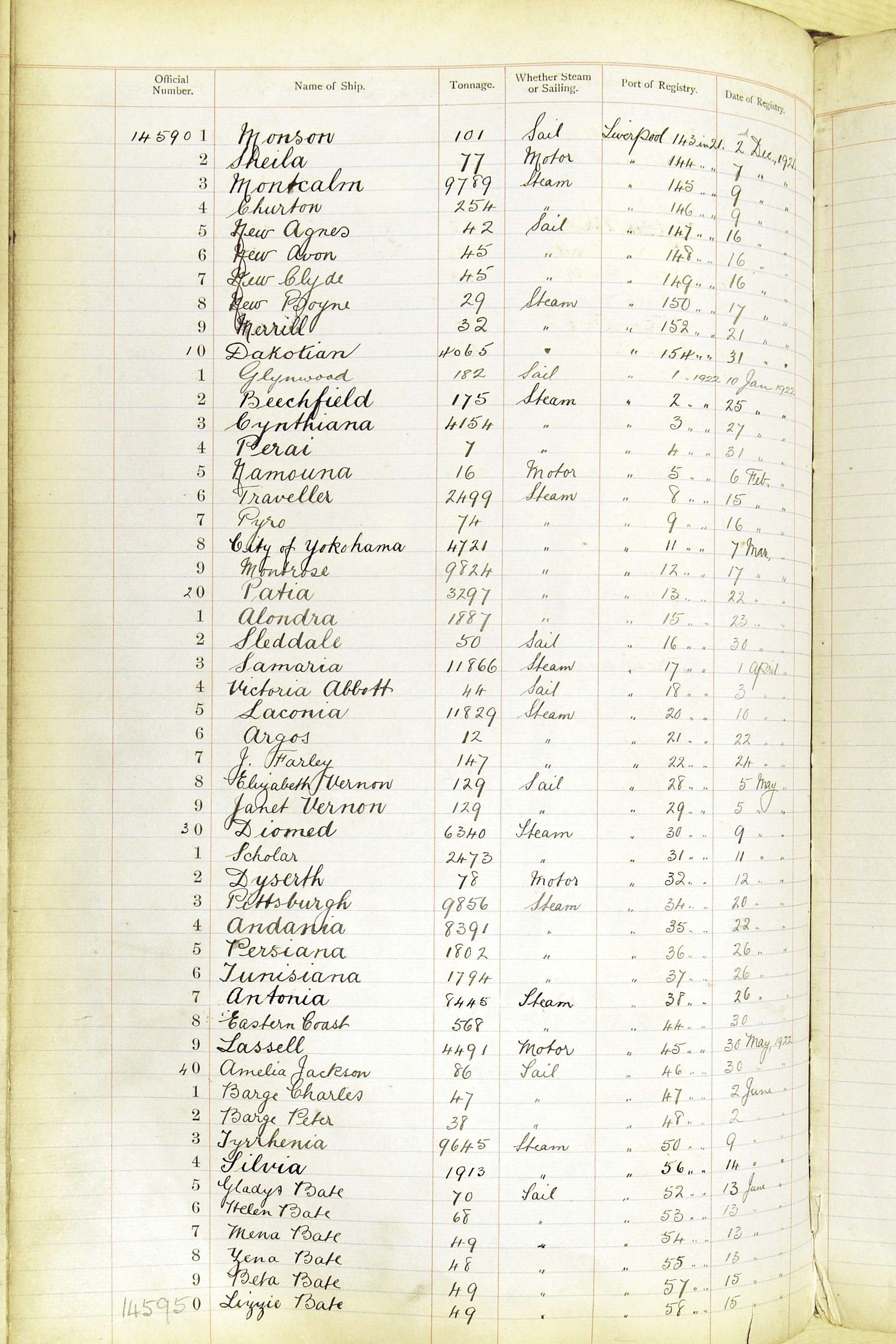 The ship names recorded are those that the ships carried at the time that their official numbers were allocated - changes are sometimes noted, but the best source for changes of name are the shipping registers for the port, or alternatively the Mercantile Navy List.