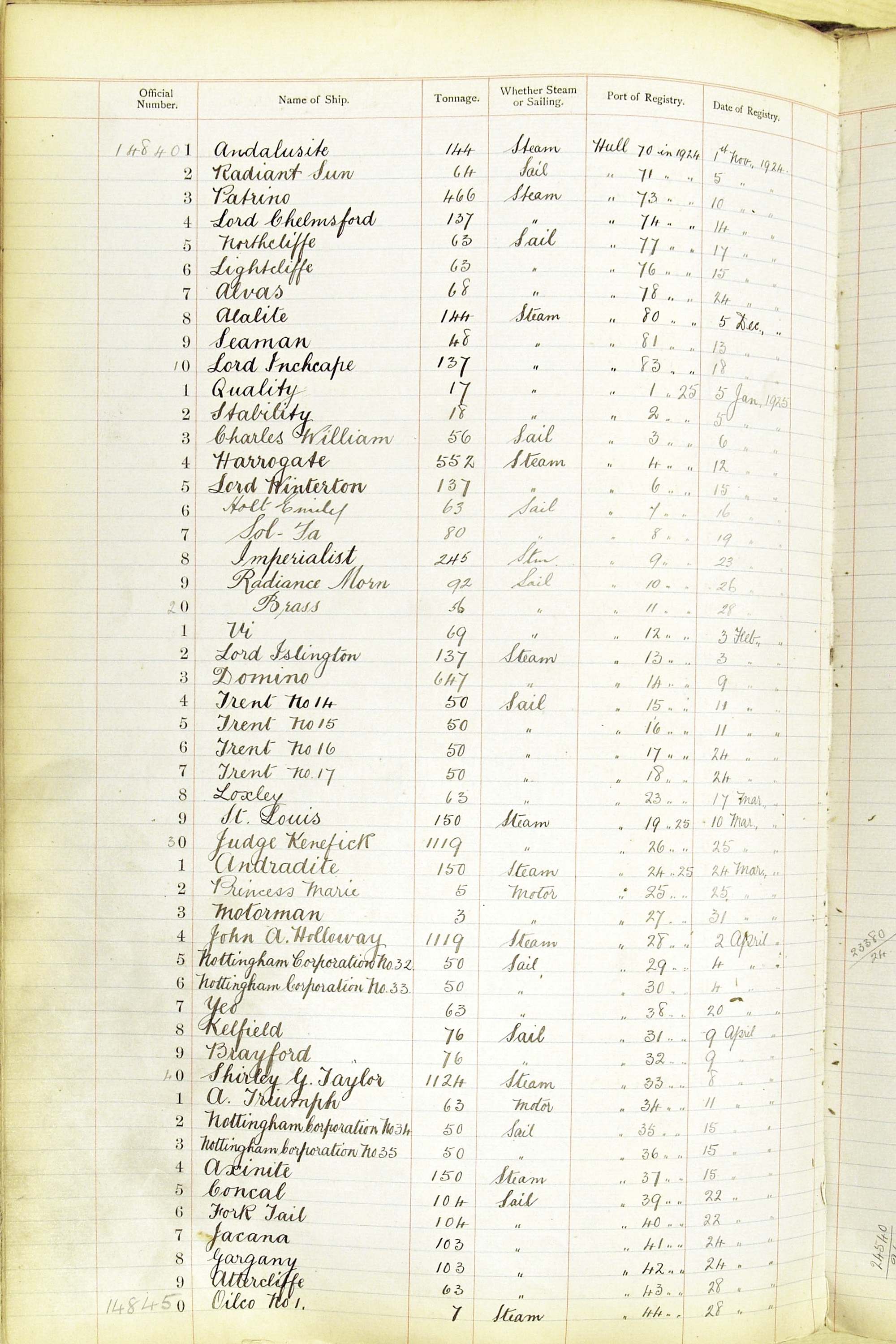When the system of official numbers began on 16 April 1855, the British Ports of Registry were each allocated batches of official numbers. For official numbers up to 22200 you can see this allocation as a pencil note at the top of the page where the allocation began. A summary of the first allocation is shown here: Initial allocation of official numbers