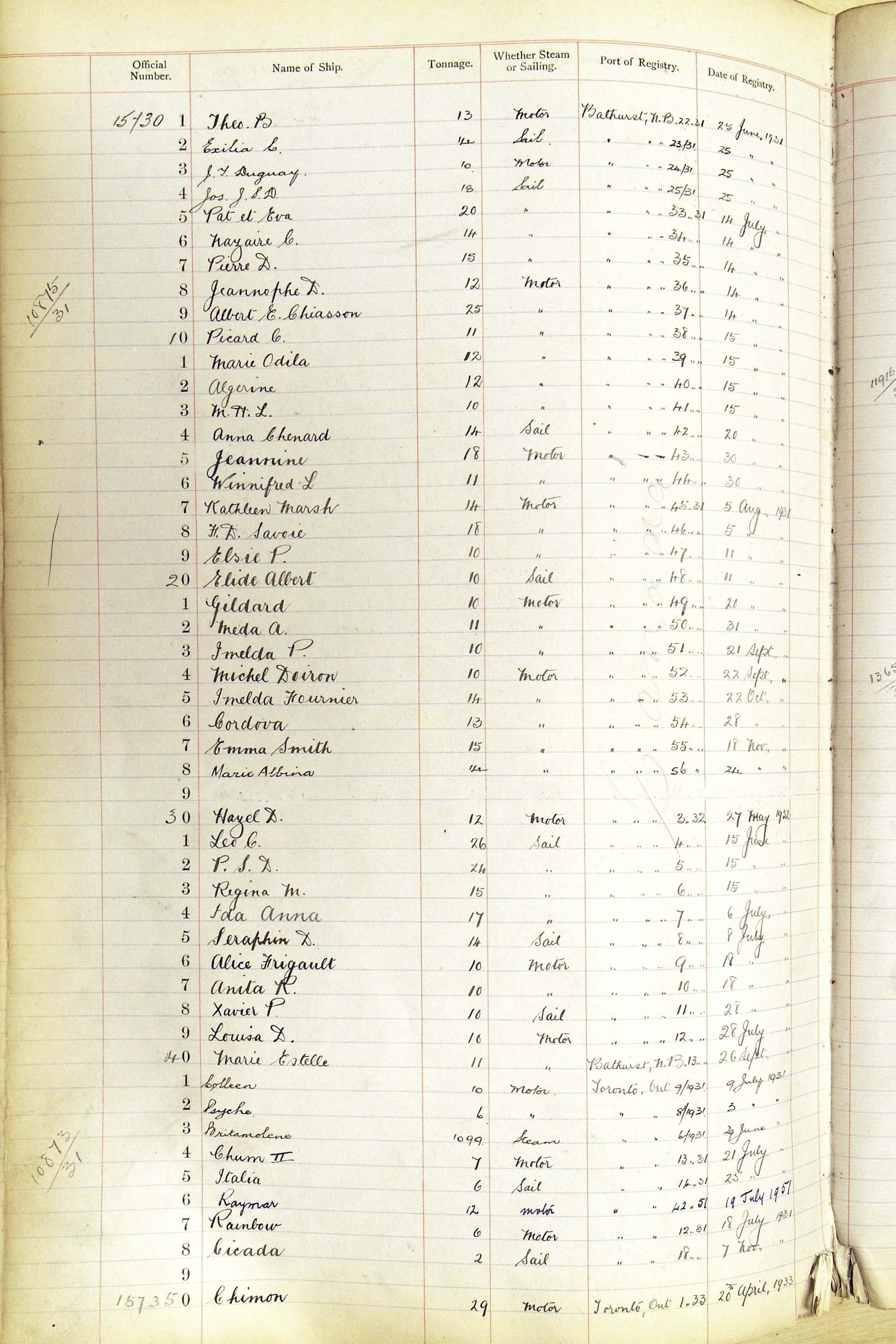 When the system of official numbers began on 16 April 1855, the British Ports of Registry were each allocated batches of official numbers. For official numbers up to 22200 you can see this allocation as a pencil note at the top of the page where the allocation began. A summary of the first allocation is shown here: Initial allocation of official numbers