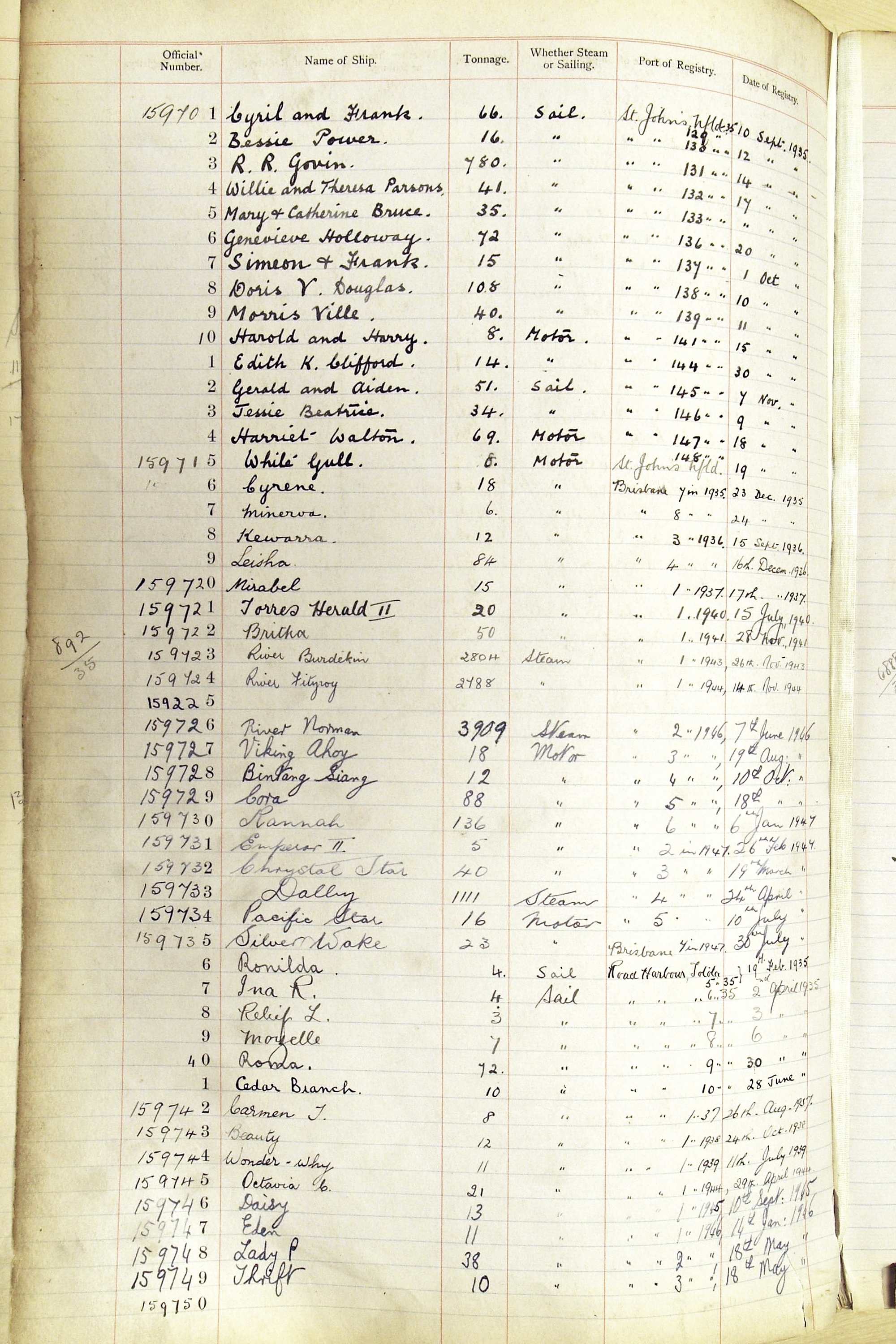 The ship names recorded are those that the ships carried at the time that their official numbers were allocated - changes are sometimes noted, but the best source for changes of name are the shipping registers for the port, or alternatively the Mercantile Navy List.