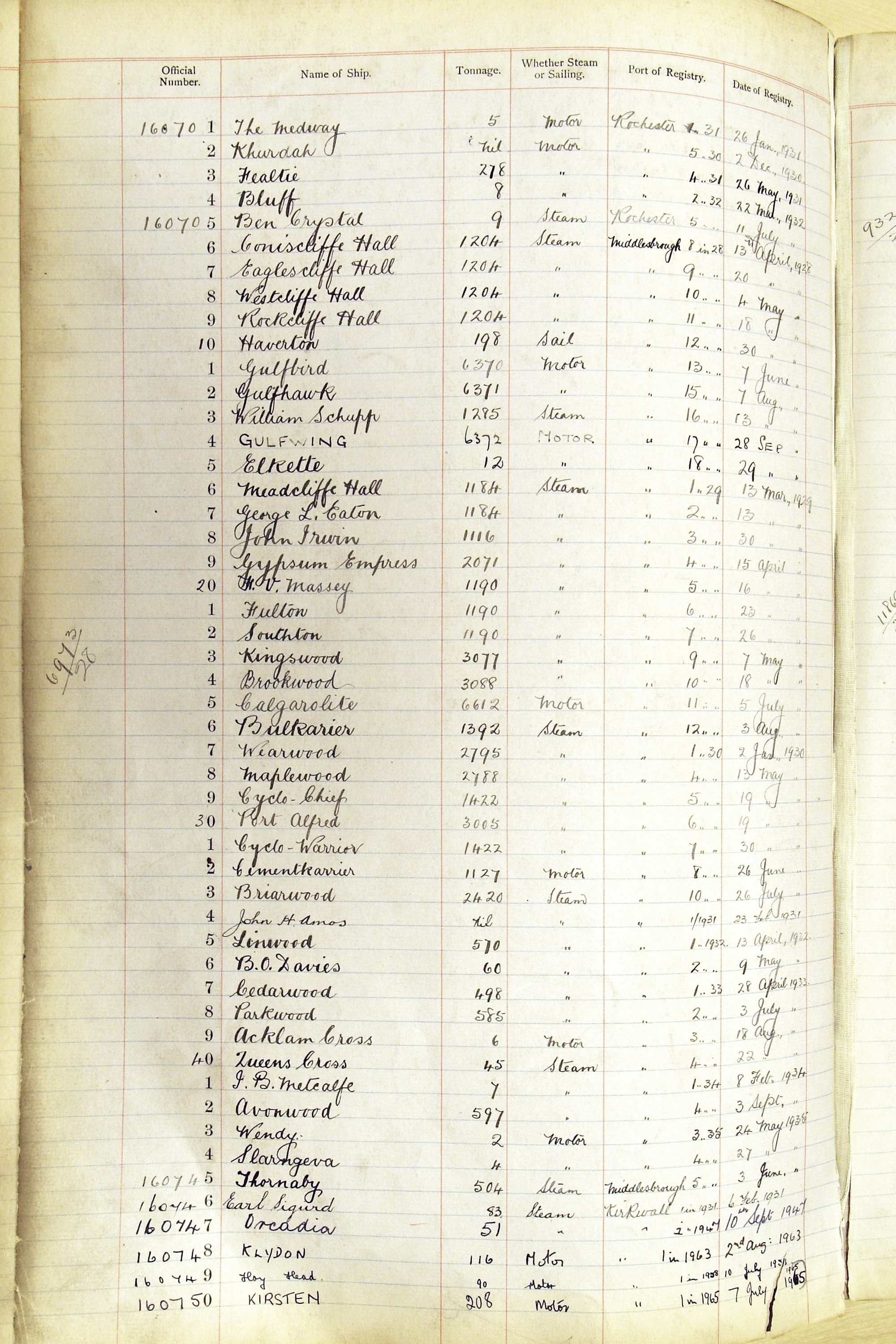The ship names recorded are those that the ships carried at the time that their official numbers were allocated - changes are sometimes noted, but the best source for changes of name are the shipping registers for the port, or alternatively the Mercantile Navy List.