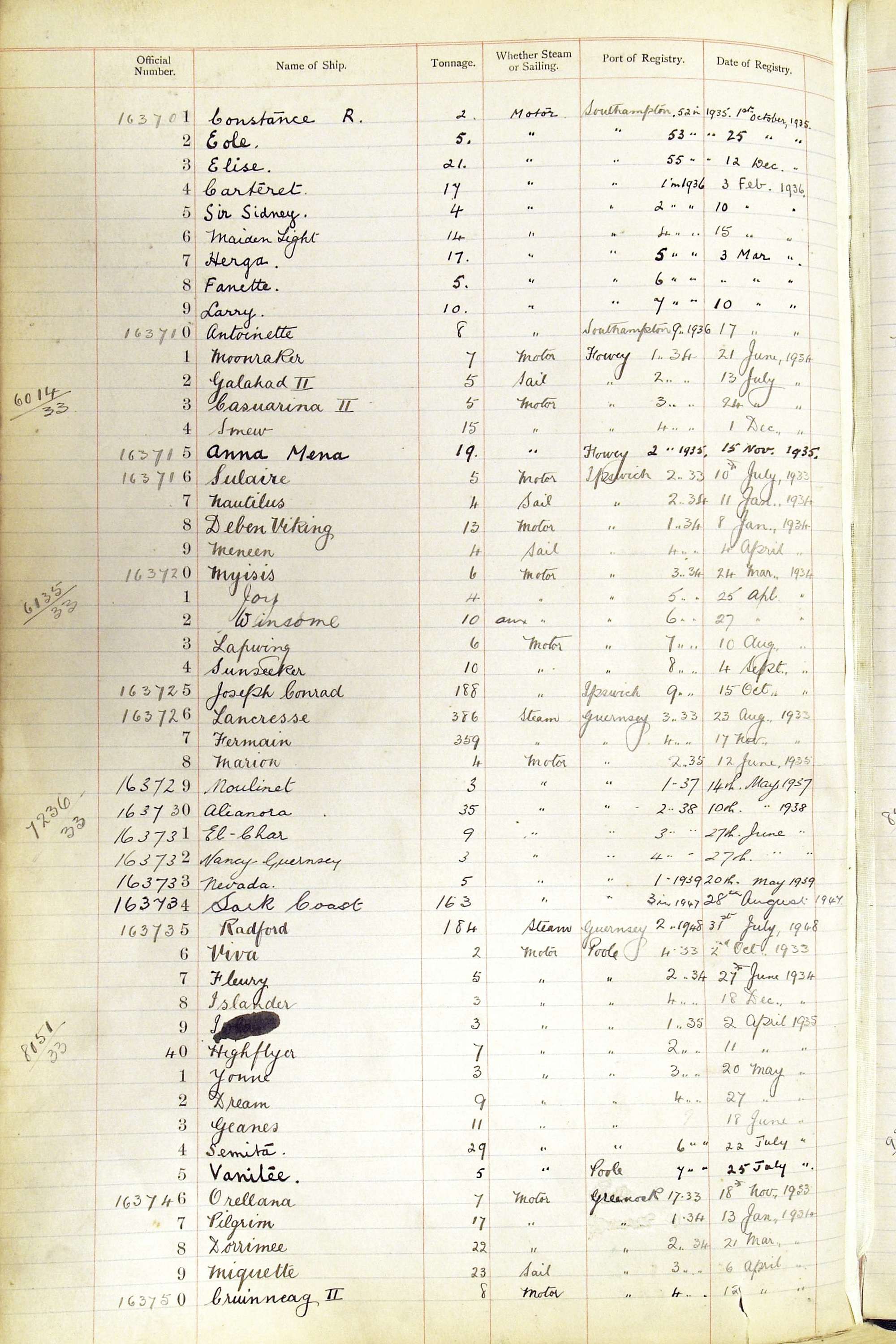 The ship names recorded are those that the ships carried at the time that their official numbers were allocated - changes are sometimes noted, but the best source for changes of name are the shipping registers for the port, or alternatively the Mercantile Navy List.