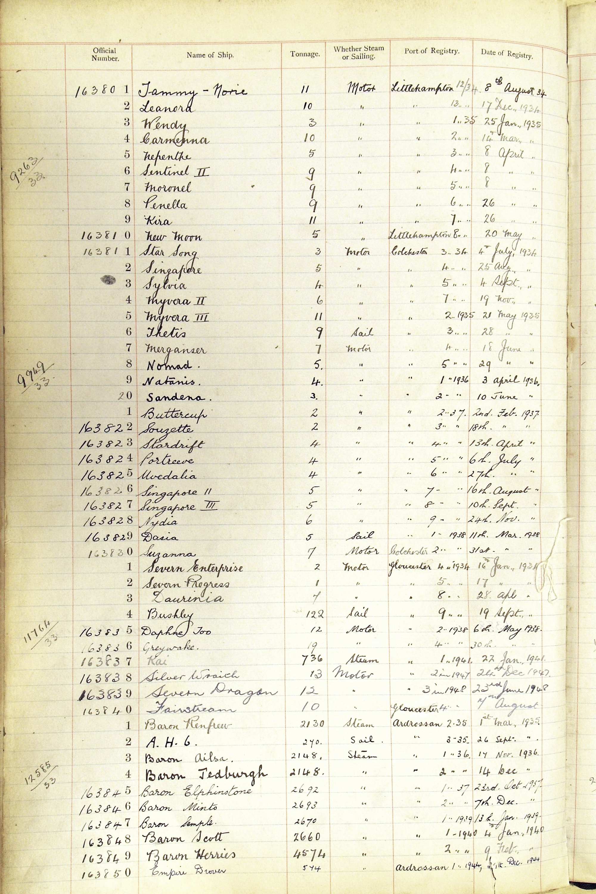 The ship names recorded are those that the ships carried at the time that their official numbers were allocated - changes are sometimes noted, but the best source for changes of name are the shipping registers for the port, or alternatively the Mercantile Navy List.