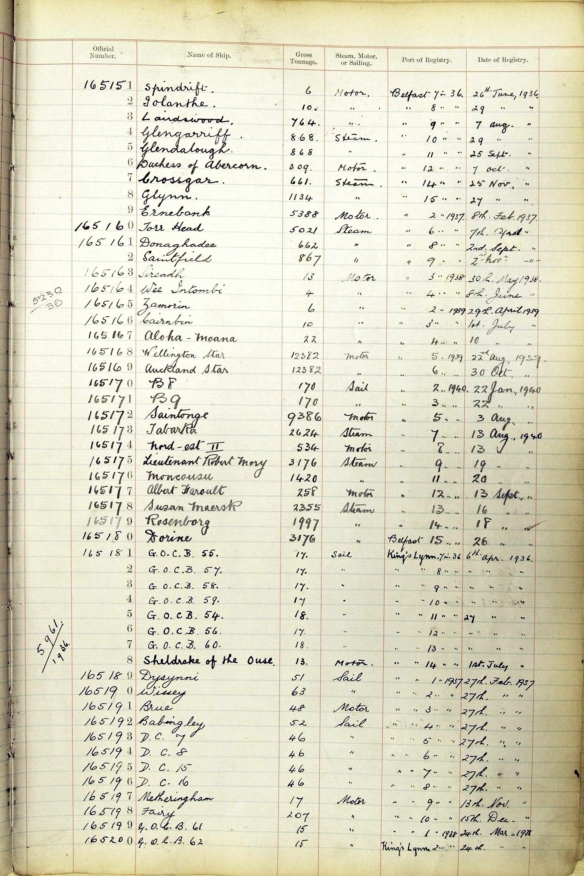 The ship names recorded are those that the ships carried at the time that their official numbers were allocated - changes are sometimes noted, but the best source for changes of name are the shipping registers for the port, or alternatively the Mercantile Navy List.