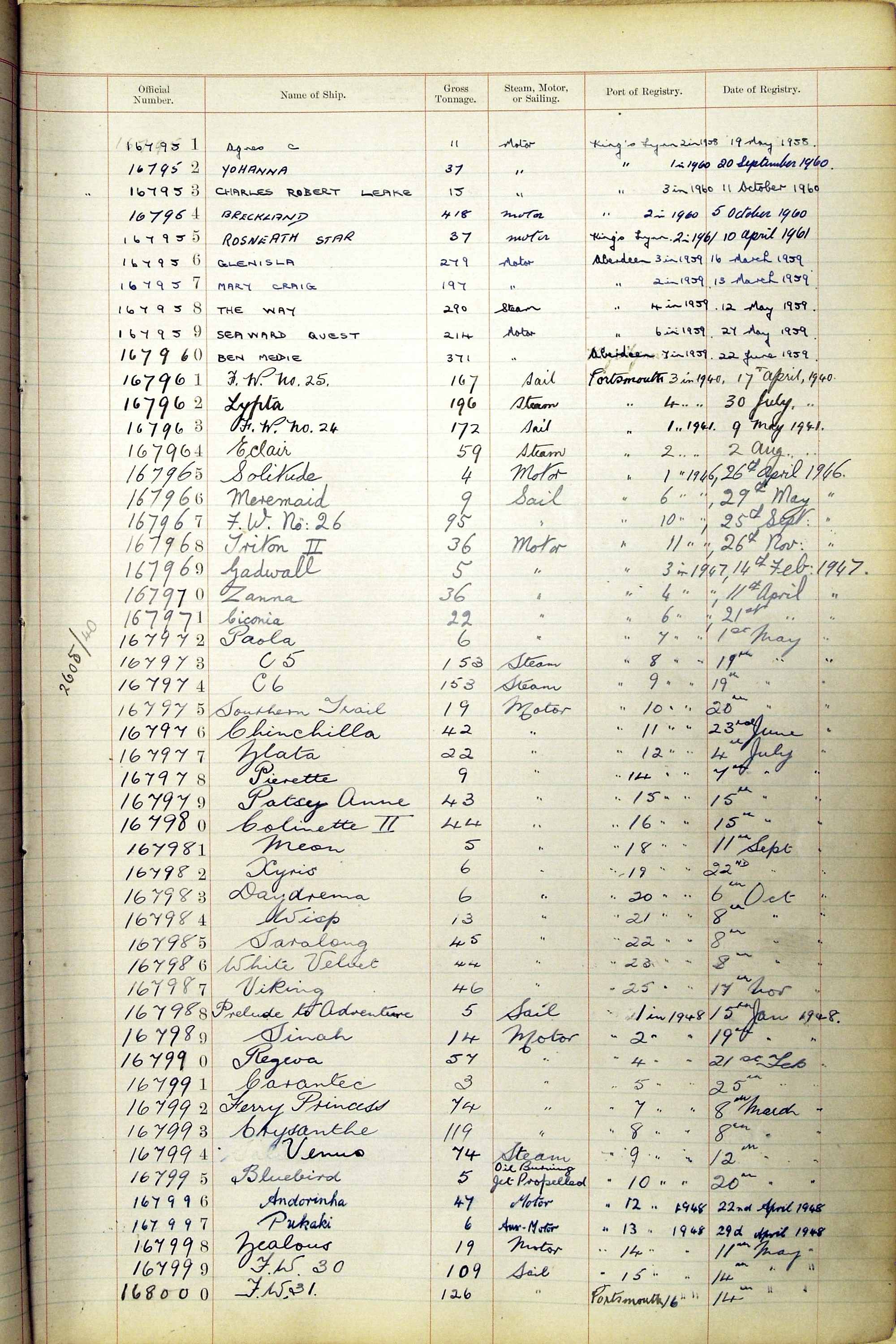 When the system of official numbers began on 16 April 1855, the British Ports of Registry were each allocated batches of official numbers. For official numbers up to 22200 you can see this allocation as a pencil note at the top of the page where the allocation began. A summary of the first allocation is shown here: Initial allocation of official numbers