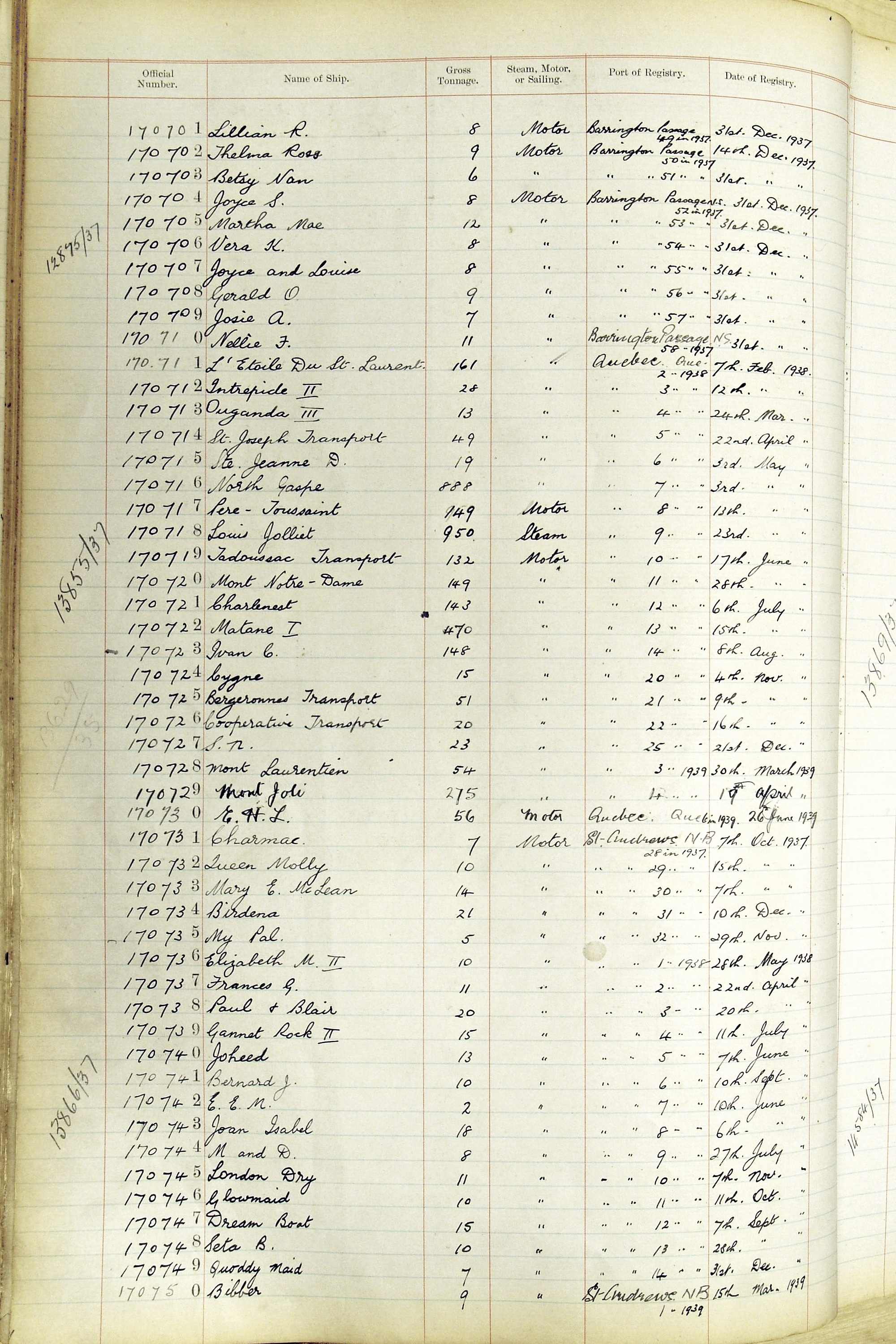 When the system of official numbers began on 16 April 1855, the British Ports of Registry were each allocated batches of official numbers. For official numbers up to 22200 you can see this allocation as a pencil note at the top of the page where the allocation began. A summary of the first allocation is shown here: Initial allocation of official numbers