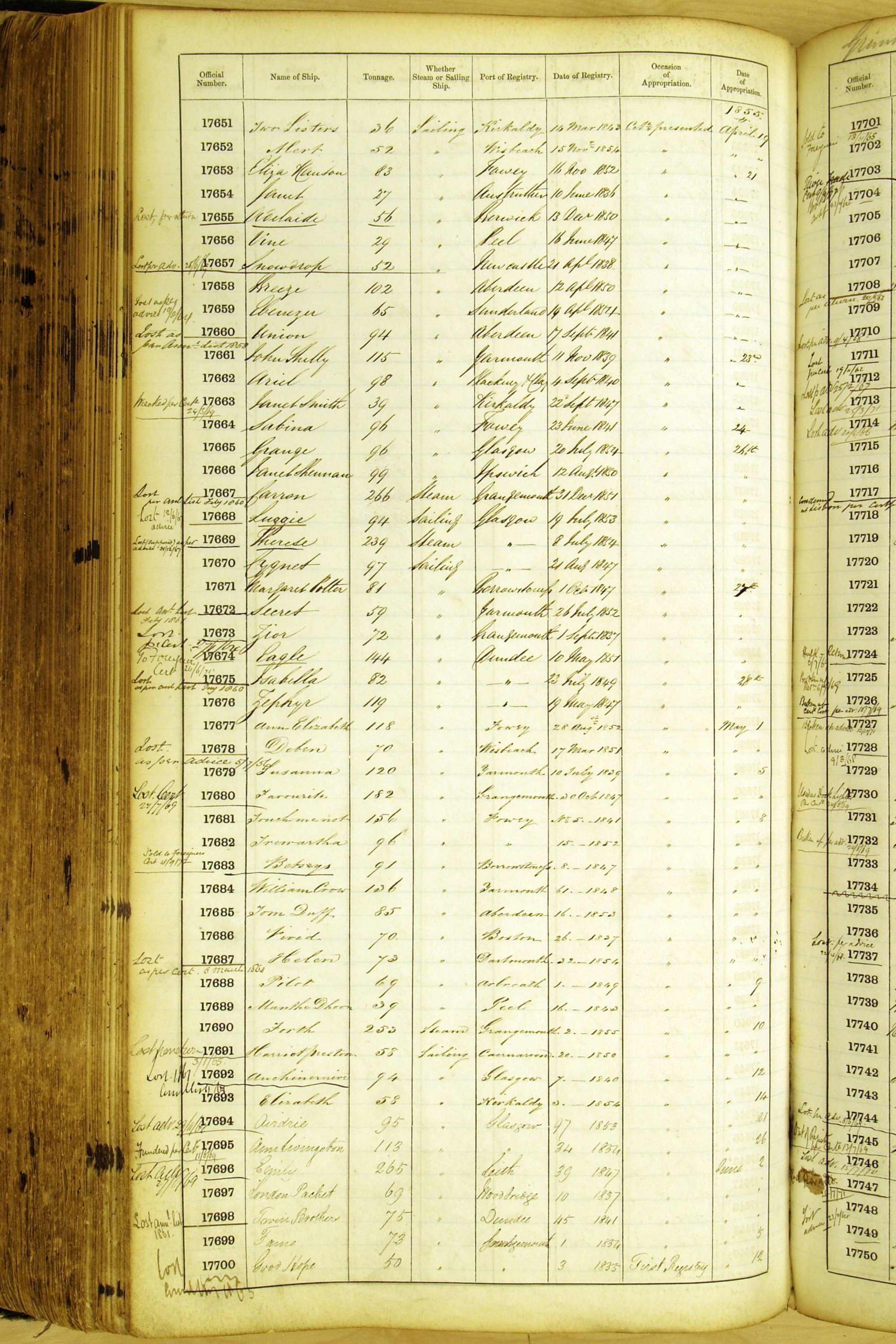 Bear in mind that the ships names in the Appropriation Books are not the definitive name or spelling of the name, even though these are the central records for the whole system. As you can see, the entries are hand-written and derived from hand-written returns made by the various ports, themselves based on the hand-written shipping registers, based on what the port officials thought the person registering the ship was saying or had hand-written down.