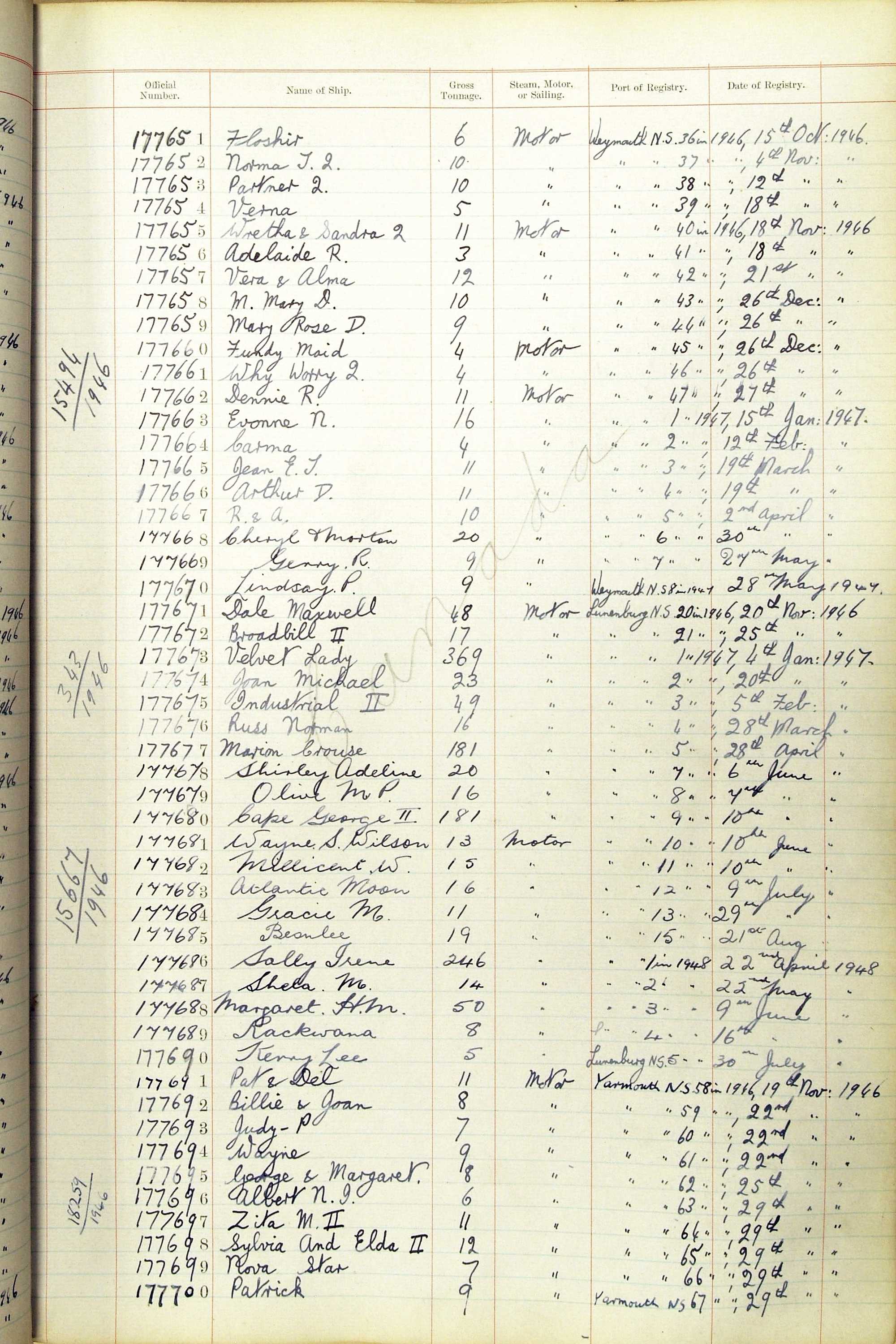 The ship names recorded are those that the ships carried at the time that their official numbers were allocated - changes are sometimes noted, but the best source for changes of name are the shipping registers for the port, or alternatively the Mercantile Navy List.