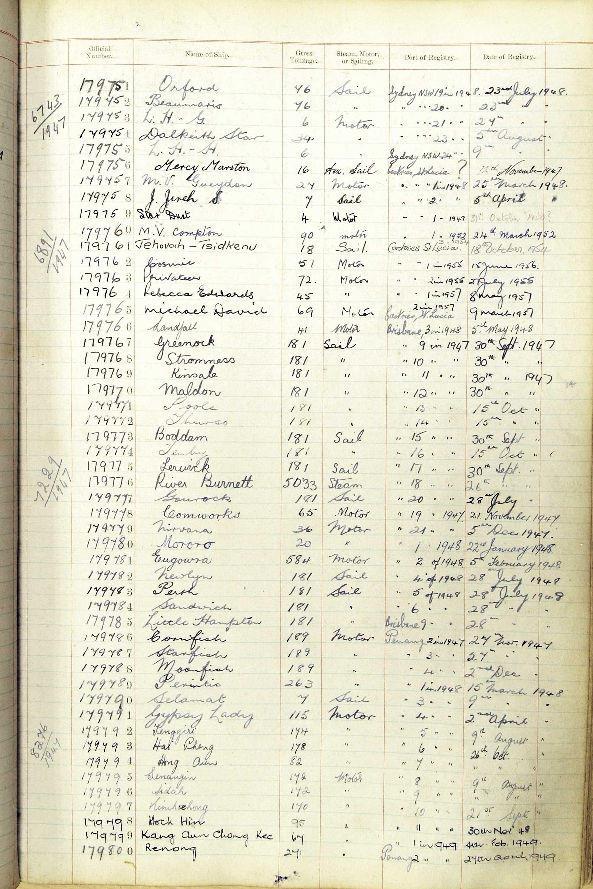 When the system of official numbers began on 16 April 1855, the British Ports of Registry were each allocated batches of official numbers. For official numbers up to 22200 you can see this allocation as a pencil note at the top of the page where the allocation began. A summary of the first allocation is shown here: Initial allocation of official numbers