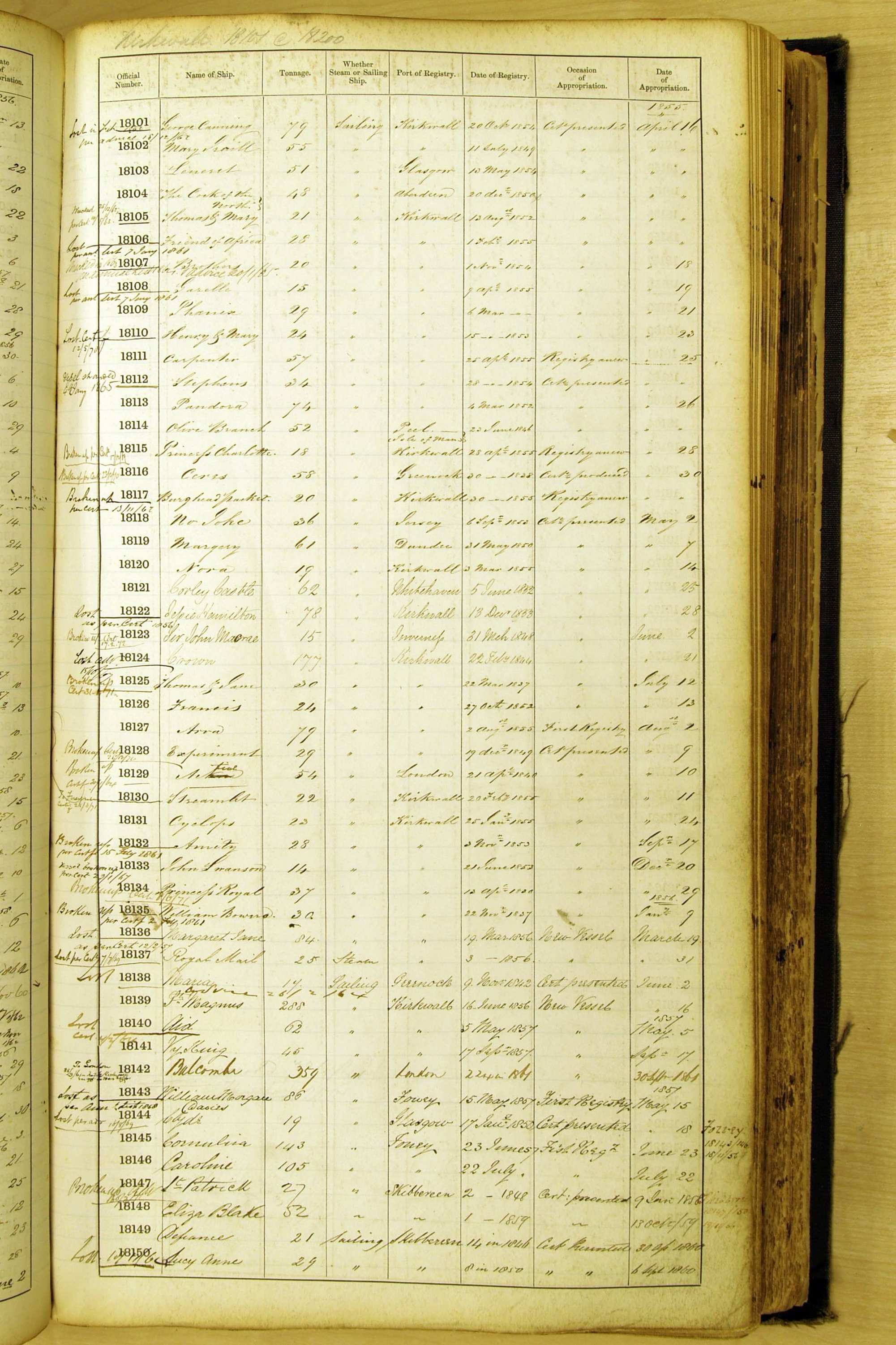 Bear in mind that the ships names in the Appropriation Books are not the definitive name or spelling of the name, even though these are the central records for the whole system. As you can see, the entries are hand-written and derived from hand-written returns made by the various ports, themselves based on the hand-written shipping registers, based on what the port officials thought the person registering the ship was saying or had hand-written down.
