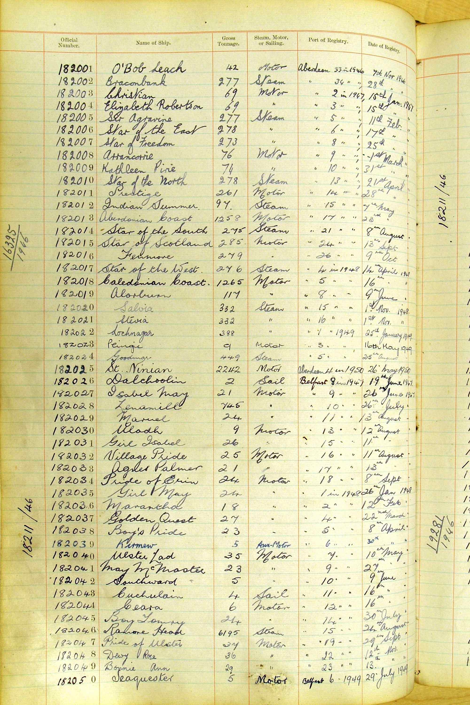 When the system of official numbers began on 16 April 1855, the British Ports of Registry were each allocated batches of official numbers. For official numbers up to 22200 you can see this allocation as a pencil note at the top of the page where the allocation began. A summary of the first allocation is shown here: Initial allocation of official numbers