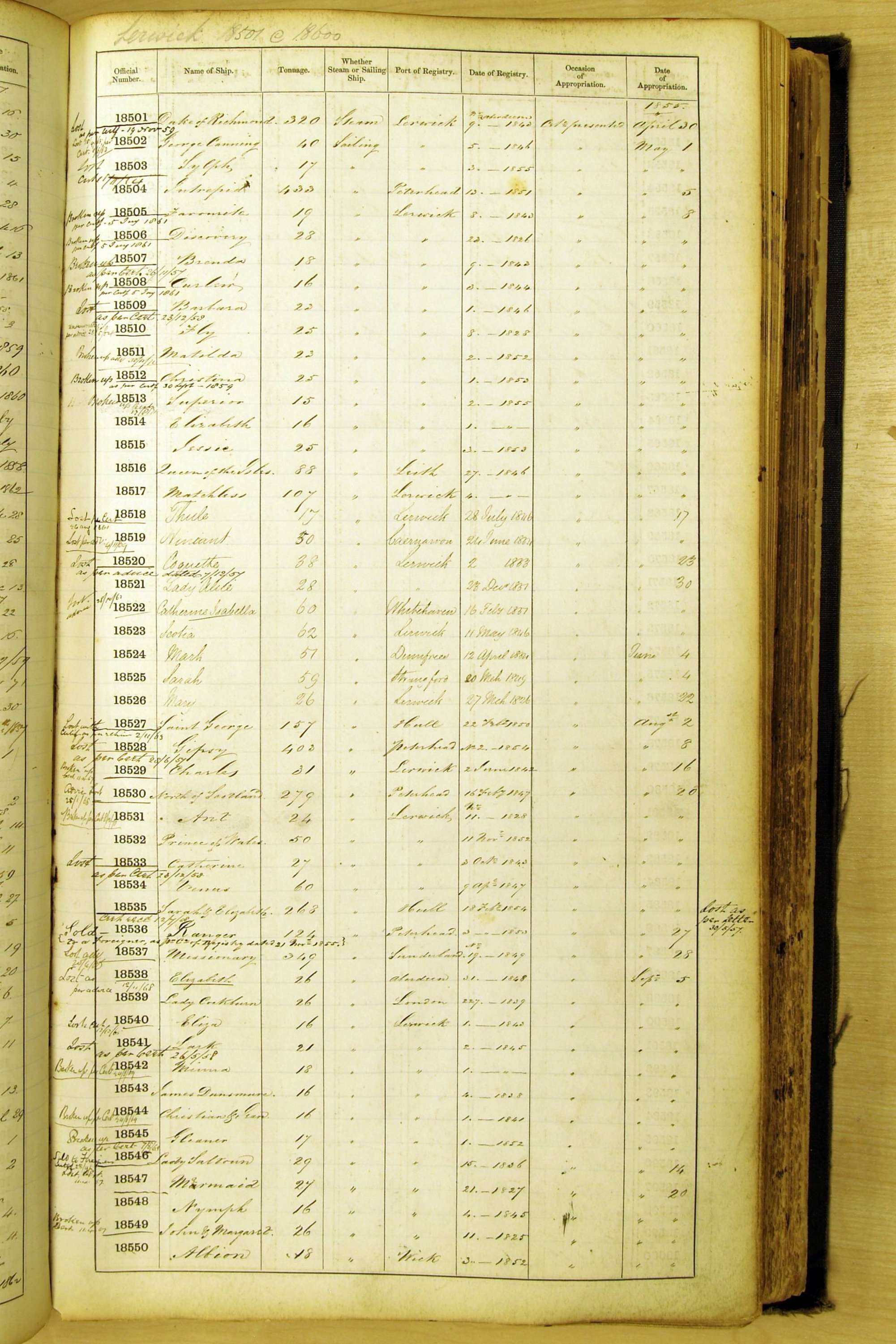 When the system of official numbers began on 16 April 1855, the British Ports of Registry were each allocated batches of official numbers. For official numbers up to 22200 you can see this allocation as a pencil note at the top of the page where the allocation began. A summary of the first allocation is shown here: Initial allocation of official numbers