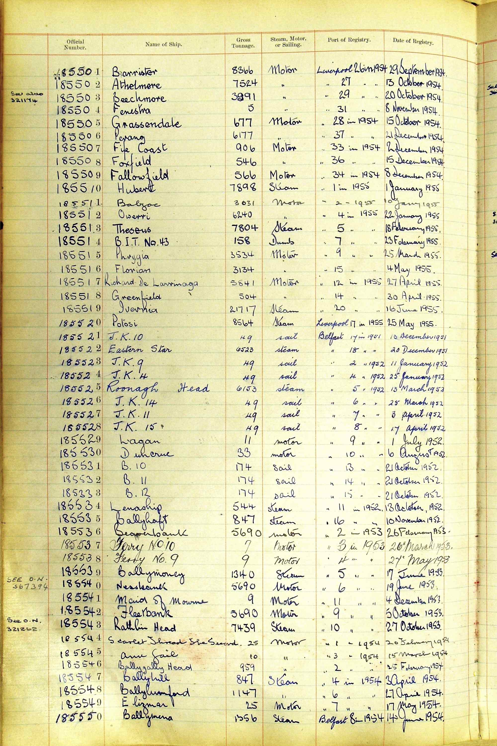 When the system of official numbers began on 16 April 1855, the British Ports of Registry were each allocated batches of official numbers. For official numbers up to 22200 you can see this allocation as a pencil note at the top of the page where the allocation began. A summary of the first allocation is shown here: Initial allocation of official numbers
