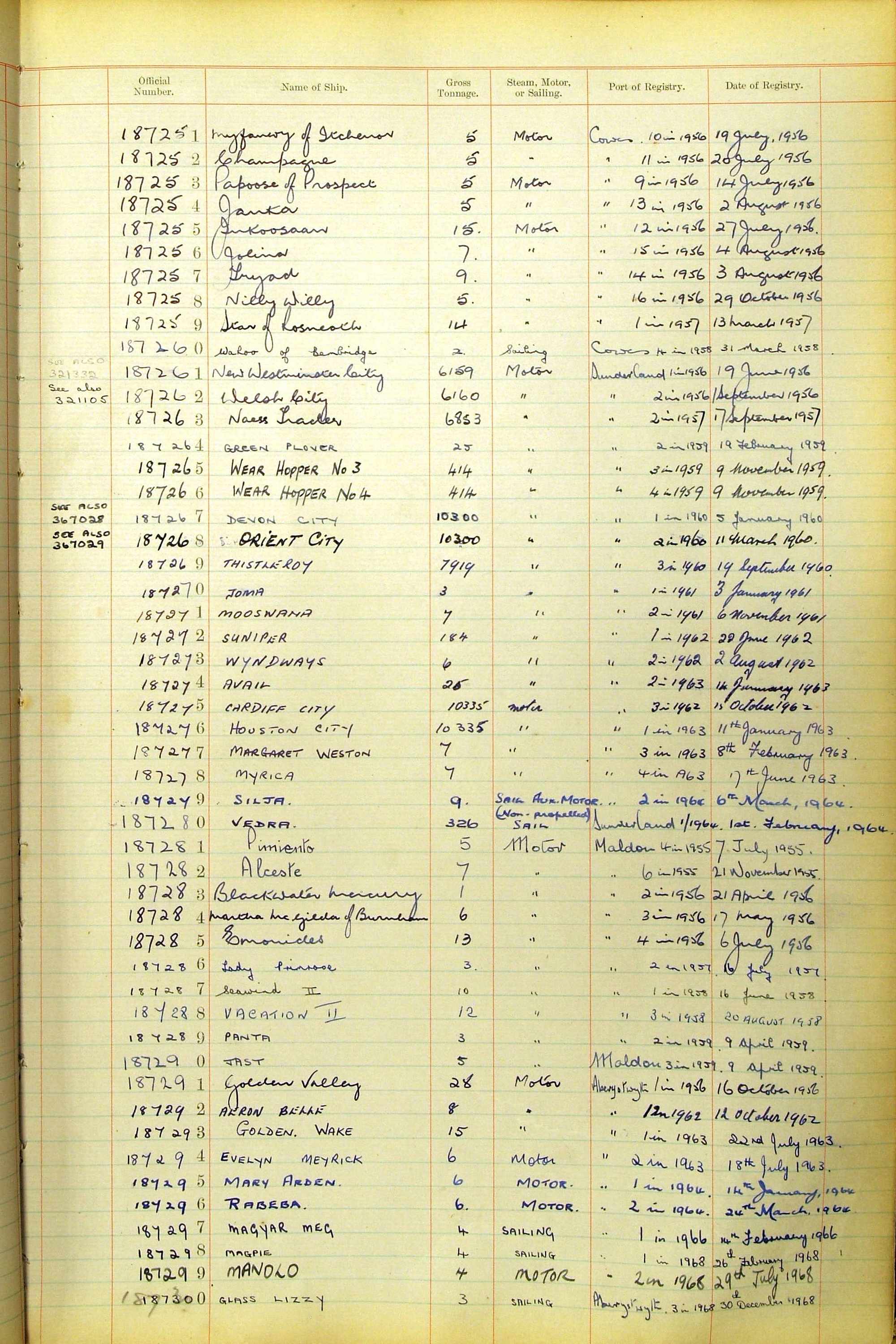 The ship names recorded are those that the ships carried at the time that their official numbers were allocated - changes are sometimes noted, but the best source for changes of name are the shipping registers for the port, or alternatively the Mercantile Navy List.