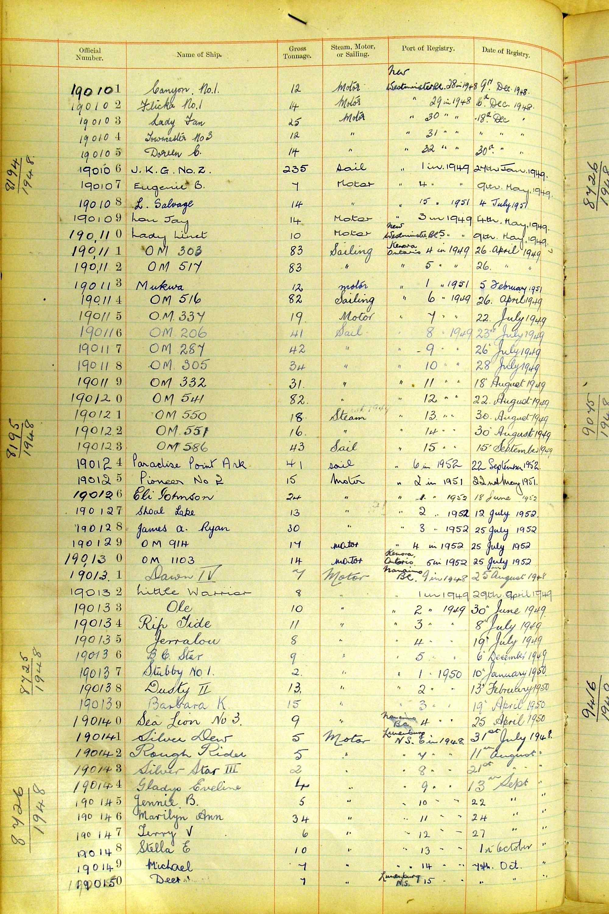 The ship names recorded are those that the ships carried at the time that their official numbers were allocated - changes are sometimes noted, but the best source for changes of name are the shipping registers for the port, or alternatively the Mercantile Navy List.