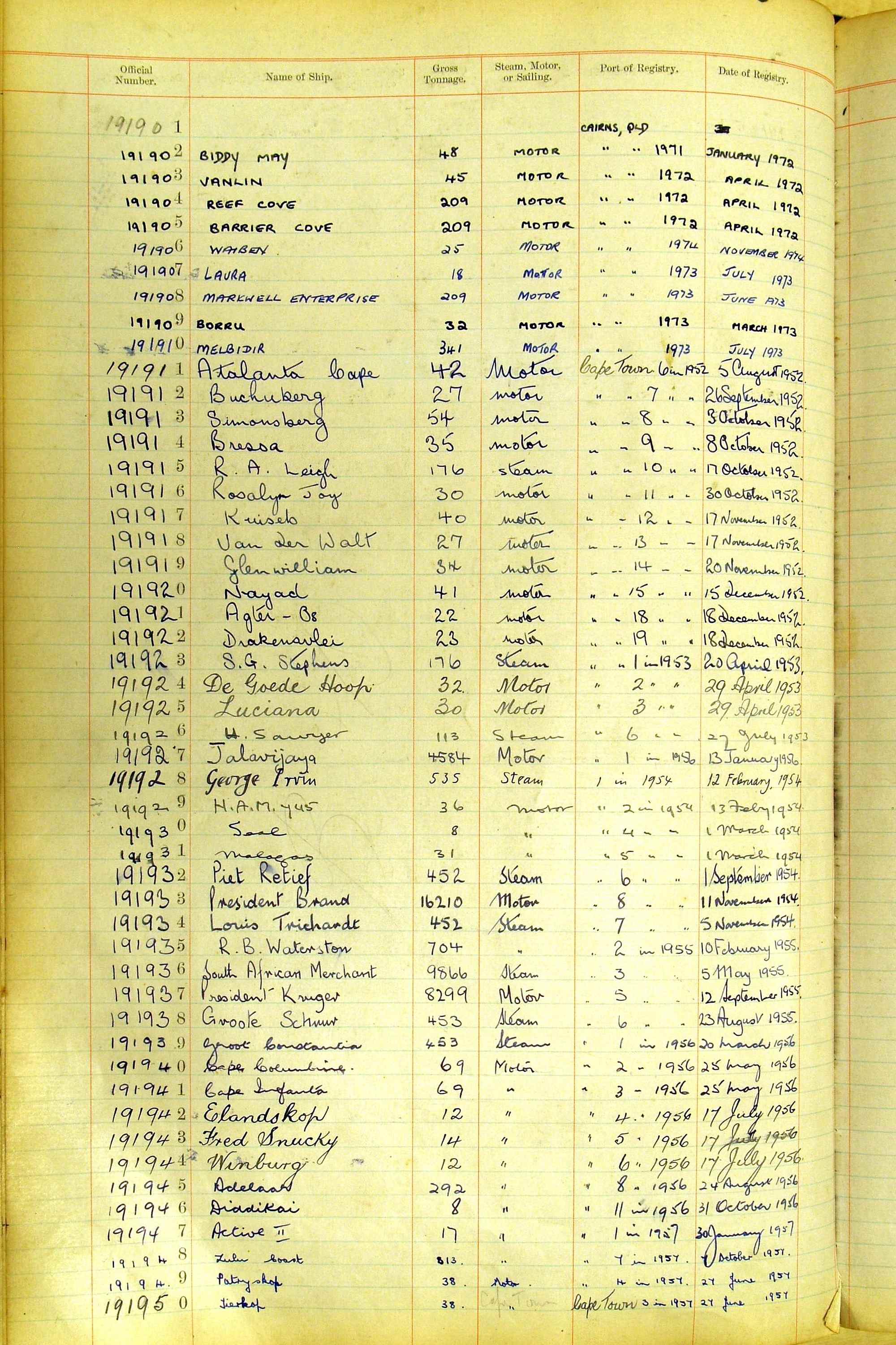 The ship names recorded are those that the ships carried at the time that their official numbers were allocated - changes are sometimes noted, but the best source for changes of name are the shipping registers for the port, or alternatively the Mercantile Navy List.