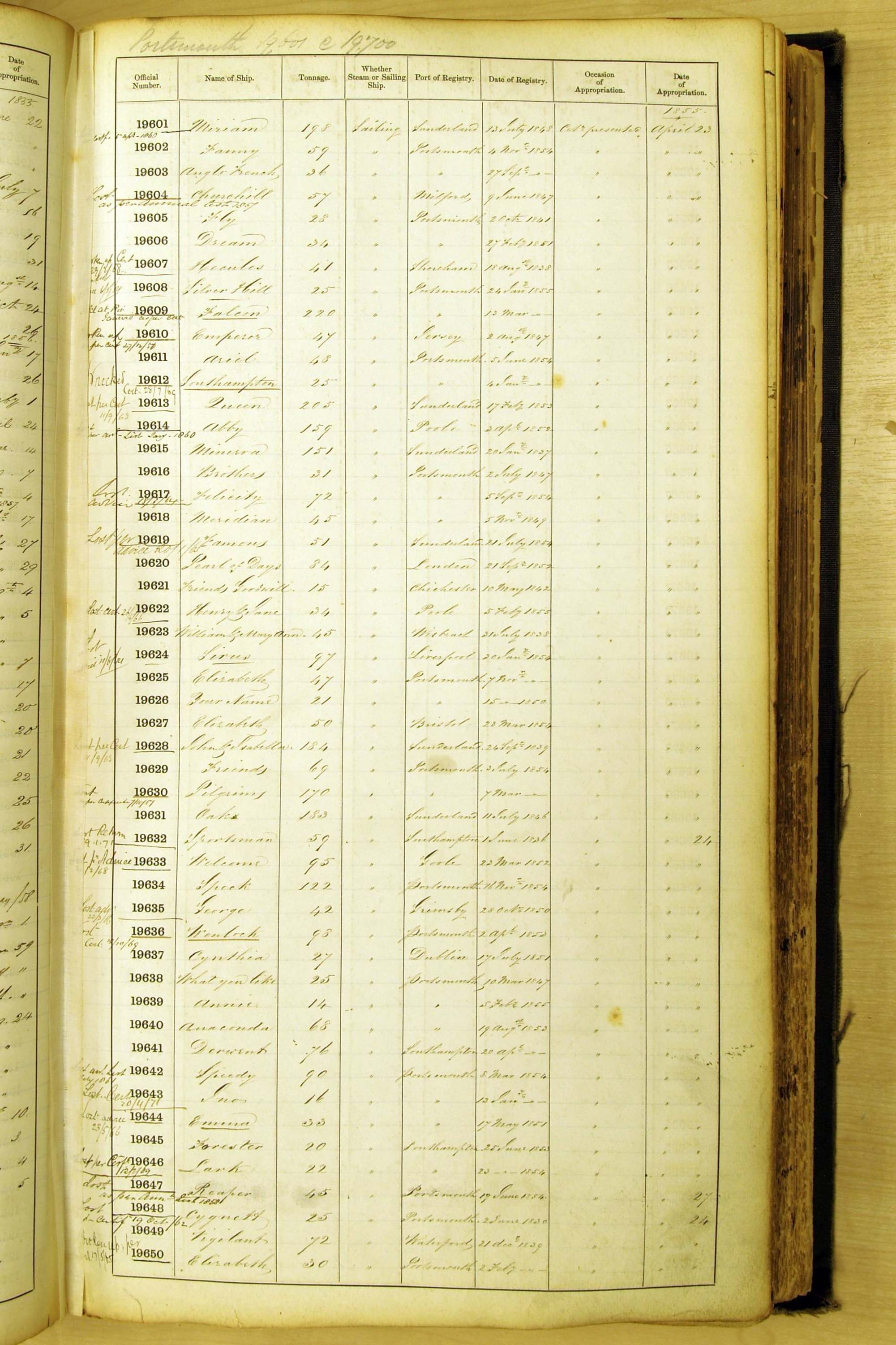 Bear in mind that the ships names in the Appropriation Books are not the definitive name or spelling of the name, even though these are the central records for the whole system. As you can see, the entries are hand-written and derived from hand-written returns made by the various ports, themselves based on the hand-written shipping registers, based on what the port officials thought the person registering the ship was saying or had hand-written down.