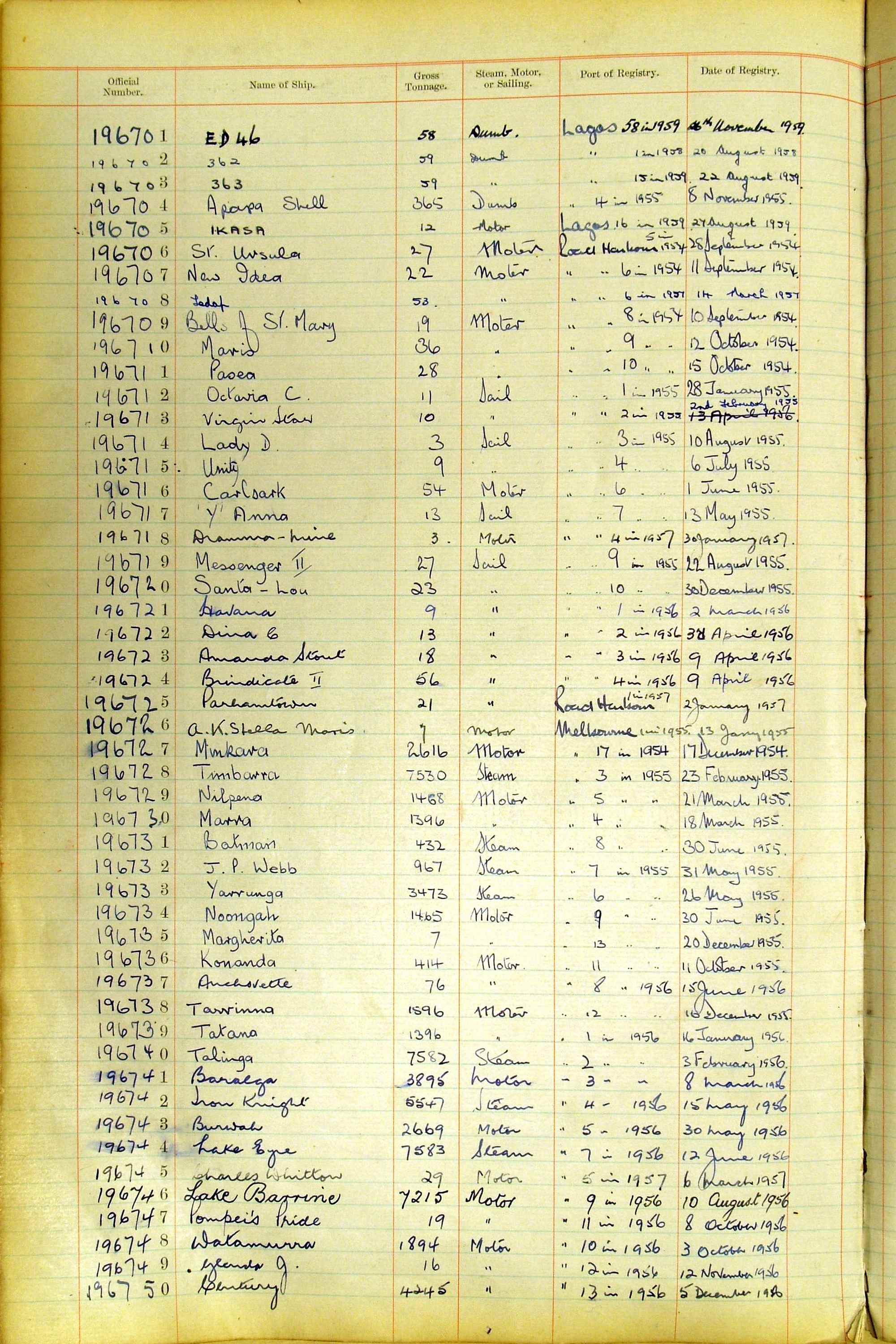 When the system of official numbers began on 16 April 1855, the British Ports of Registry were each allocated batches of official numbers. For official numbers up to 22200 you can see this allocation as a pencil note at the top of the page where the allocation began. A summary of the first allocation is shown here: Initial allocation of official numbers